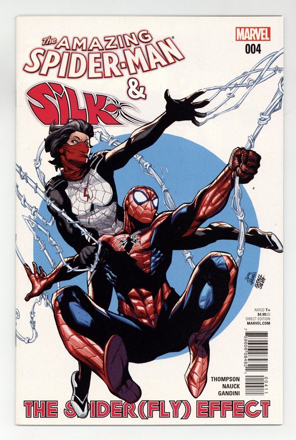 Written by Robbie Thompson. Art by Todd Nauck. Cover by Ryan Stegman. Spidey and Silk's time jaunt takes them all the way to their beginning... ...the science fair where they were bitten by the radioactive spider! Plus: Chronosaurus Rex revealed! 44 pages, full color. Rated T+ Cover price $4.99.
