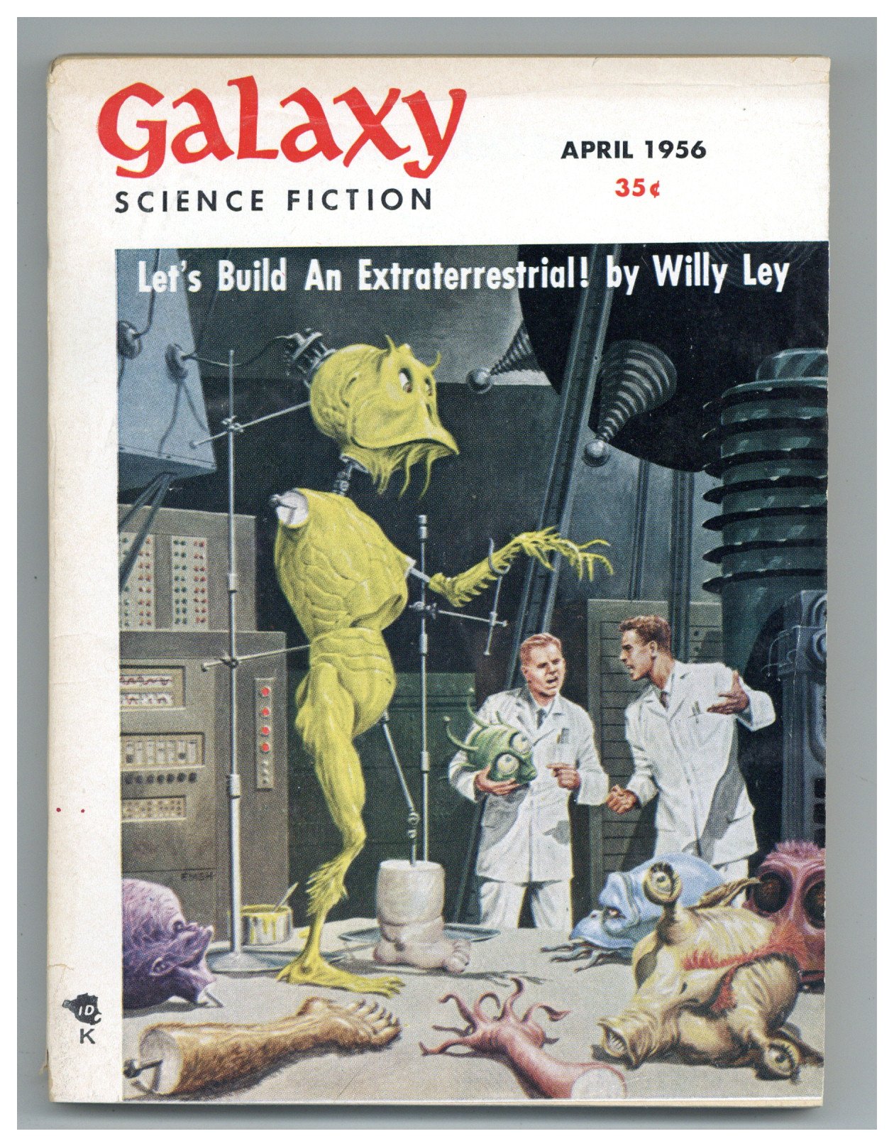 Published Apr 1956 by Galaxy Publications.$9.00Volume 11, Issue 6 - April 1956. Cover by Emsh. Stories Include "Let's Build an Extraterrestrial!" By Willy Ley, "Swenson, Dispatcher" by R. DeWitt Miller, "Point of Departure" by Vaughn Shelton, "Protection" by Robert Sheckley, and "Garrity's Annuities" by David Mason. 5 1/4-in. x 7 1/2-in. 144 Pages, B&W. Cover price $0.35.