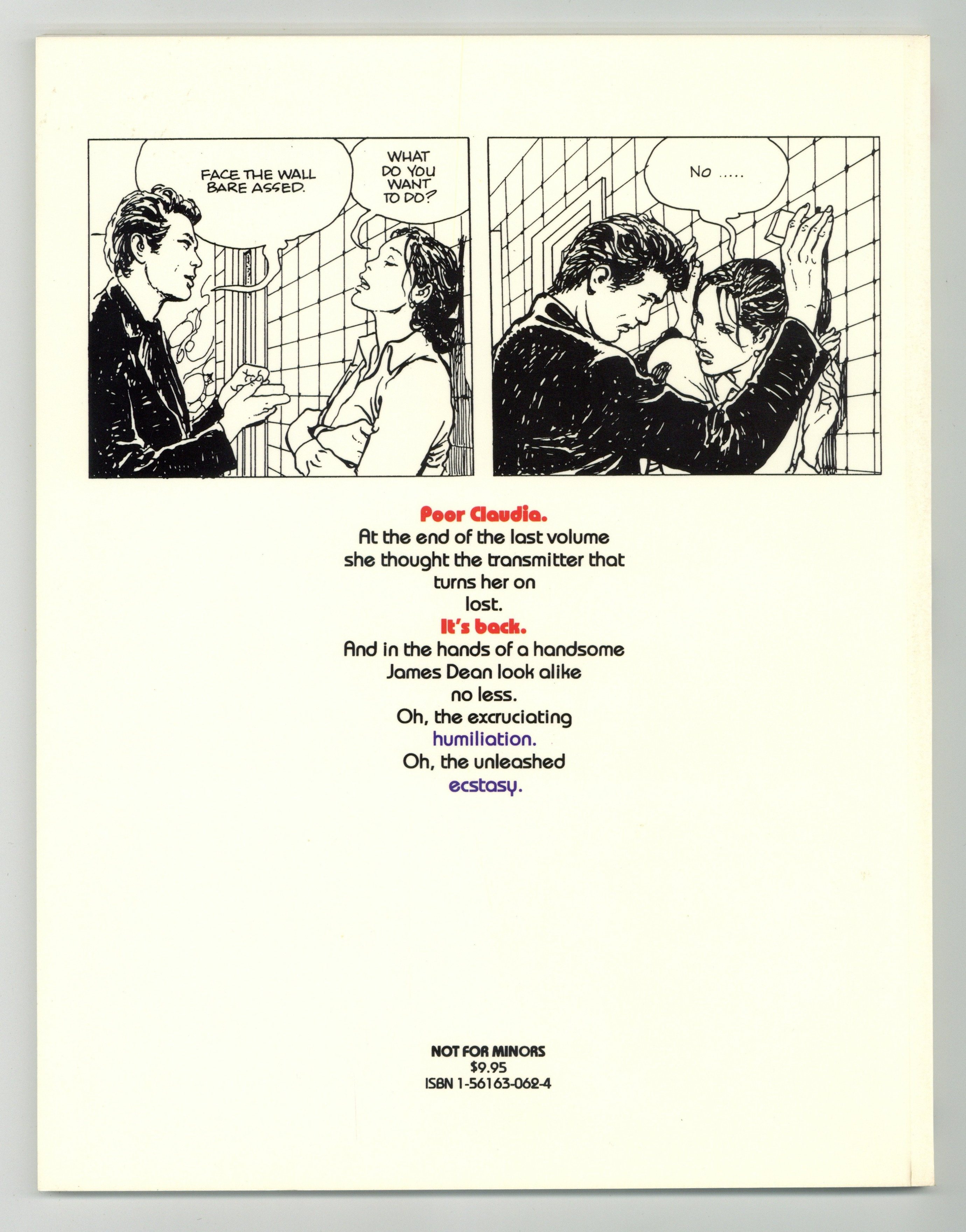 $72.00Volume 2 - 1st printing. Story and art by Milo Manara. Poor Claudia. At the end of the last volume she thought the transmitter that turns her on was lost. It's back! And, in the hands of a handsome James Dean look alike no less. Softcover, 8 1/2-in. x 11-in., 72 pages, full color. Mature Readers Cover price $12.95.