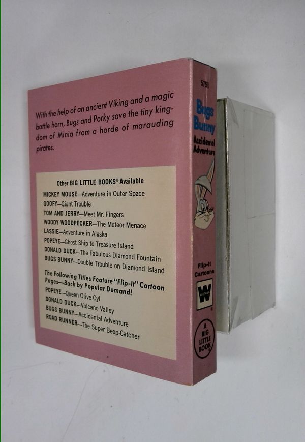 $45.00Bugs Bunny Accidental Adventure (1973 Big Little Book) is a Big Little Book published by Western Publishing, Co. The # 5758 appears on the spine. 250 pages, B&W with text, 3.5-in. x 4.75-in., softcover. Cover price $0.39.