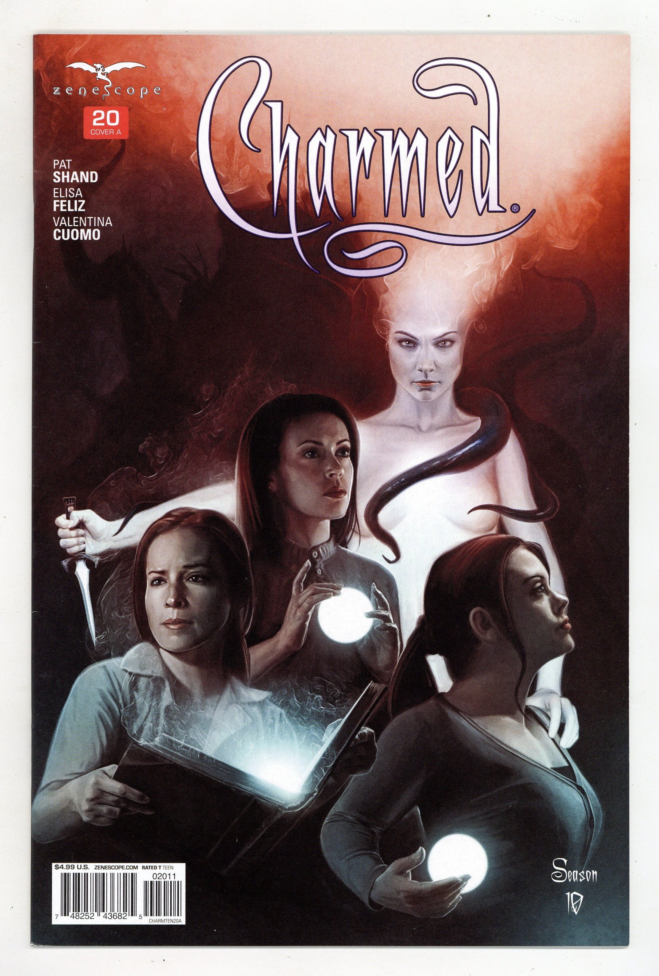 Published Sep 2016 by Zenescope Entertainment.$11.00Written by Patrick Shand. Art by Elisa Feliz. Cover by David Seidman. THE REASON SERIES FINALE The Charmed Ones, Prue, and all of their loved ones gather in Salem for a reckoning. As Paige takes a stand for her family and Piper is faced with the consequences of her actions, a door closes on the past and hope dawns on a brand new future. 36 pages, full color. Rated T Cover price $4.99.