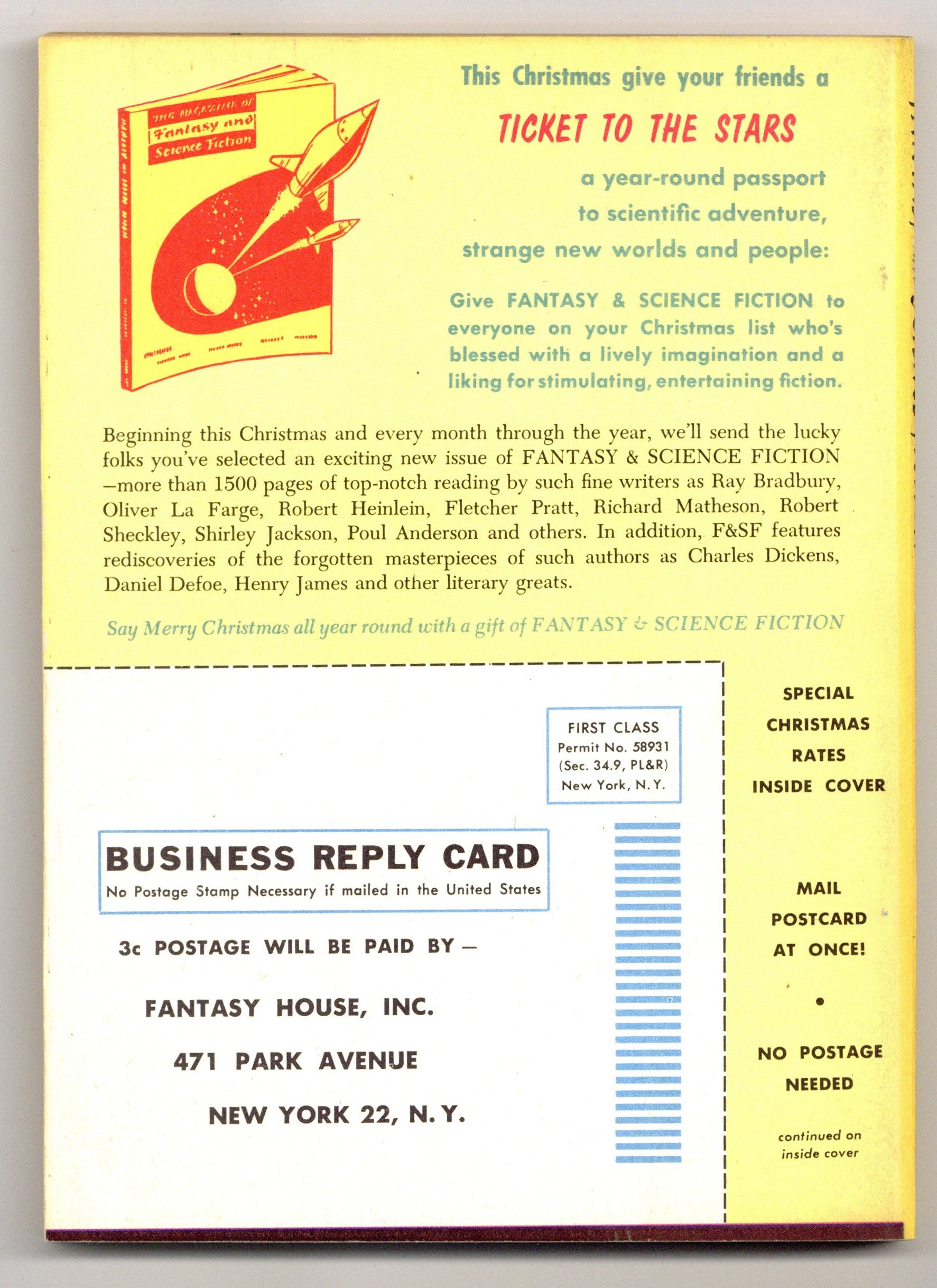 Published Nov 1955 by Mercury Publications.$7.80Volume 9, Issue 5 - November 1955. Cover by Edward Emsh. Fantasy and science fiction stories featuring "The[Widget], The [Wadget], and Boff" by Theodore Sturgeon, and stories by Poul Anderson, Gordon R. Dickson, Idris Seabright, Lee Correy, and Frank Gruber. Softcover, 5 1/2-in. x 7 1/2-in., 128 pages, B&W. Cover price $0.35.