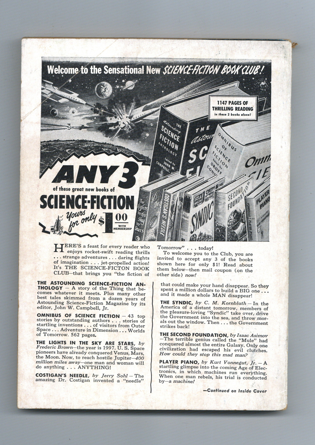 Published May 1954 by Galaxy Publishing.$18.00Volume 1, Issue 6 - May 1954. Fantasy anthology magazine featuring "Sine of the Magus" by James E. Gunn, "Bottled in Russia" by A.J. Greenwald. 5 1/2-in. x 7 1/2-in., 164 pages, Text (with B&W illustrations throughout) Cover price $0.35.
