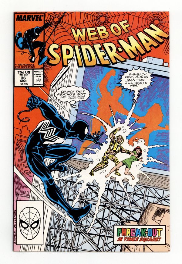 Tags: Spider-Man$20.00Direct Edition. "Phreak-Out!" Story by Gerry Conway. Art by Alex Saviuk and Keith Williams. The young scientist from the previous issue is still on the loose, and now he has built his own powerful exo-skeleton. The Phreak goes to Peter Parker's apartment and abducts Mary Jane; setting the stage for a showdown with Spider-Man over Times Square! Meanwhile, Joe Robertson is horrified to see a chilling old acquaintance and a soon-to-be new villain for Spider-Man. First appearance of Tombstone. 32 pages Cover price $0.75.