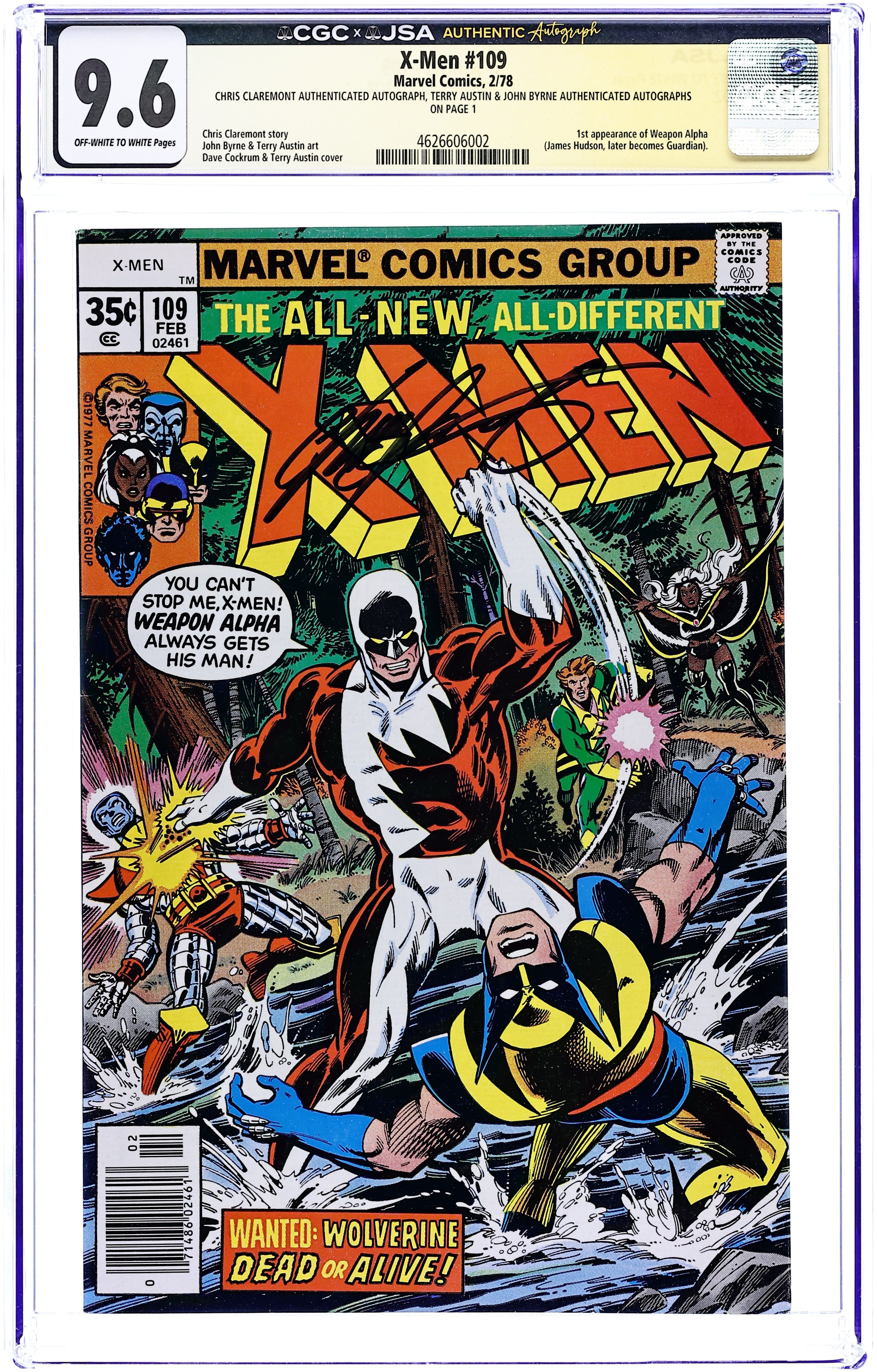 - Chris Claremont authenticated autograph, Terry Austin & John Byrne authenticated autographs on page 1.