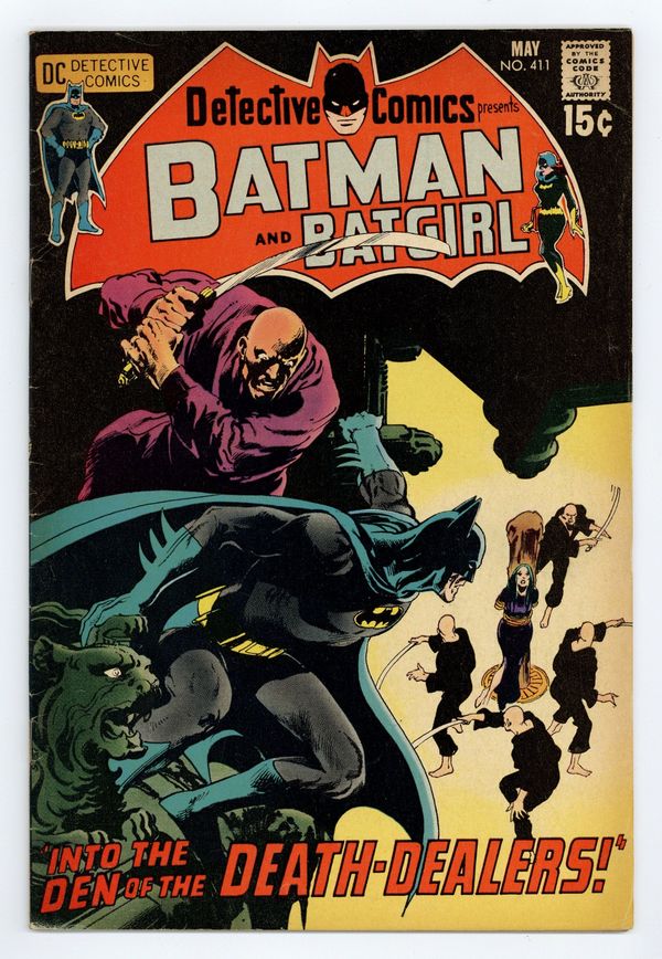 Cover by Neal Adams. Ra's Al Ghul and the first appearance of his daughter, Talia, in "Into the Den of the Death-Dealers!," script by Denny O'Neil, pencils by Bob Brown, inks by Dick Giordano; Batman scales the side of Gotham's Statue of Freedom for a secret meeting with an informant inside the torch; The informant wants police protection in exchange for turning over evidence on Doctor Darrk and the League of Assassins; Before the criminal can reveal anything however, an assassin sneaks into the chamber and stabs him from behind. "Cut... and Run!," script by Frank Robbins, pencils by Don Heck, inks by Dick Giordano; Continuing from last issue, Batgirl has stumbled upon criminal activity involving the latest fashion sensation of the worlds greatest fashion model Mamie Archeson, a discovery that has her strapped onto a fabric cutter by the crook known as Serpy. Letter of comment from letter hack Guy Lillian. 36 pgs., full color. $0.15. Cover price $0.15.
