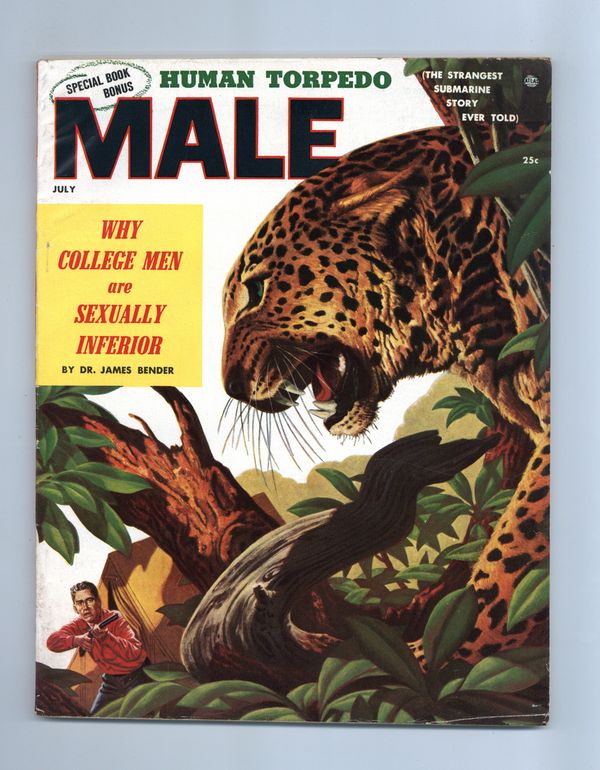 Published Jul 1954 by Male Publishing Corp..$22.00Volume 4, Issue 7 - July 1954. Men's adventure magazine with articles, fiction, and humor. 8 1/2-in. x 11-in. 98 Pages B&W. Cover price $0.25.