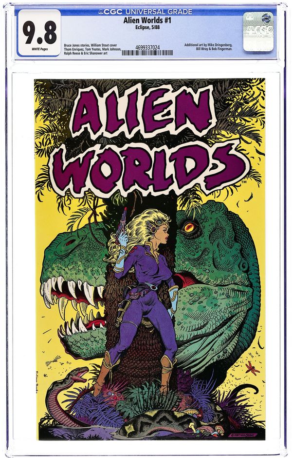 Cover by William Stout. Written by Bruce Jones. Art by Thom Enriquez, Tom Yeates, Mark Johnson, Ralph Reese, Eric Shanower, Mike Dringenberg, Bill Wray and Bob Fingerman. Featuring: "Phony Express"; "Looking for Louie"; "Boots and Jackets"; "In the Meadow"; "Jupiter Rising"; and "Worlds Apart"! Softcover, 48 pages, full color. Mature Readers. Cover price $3.95.