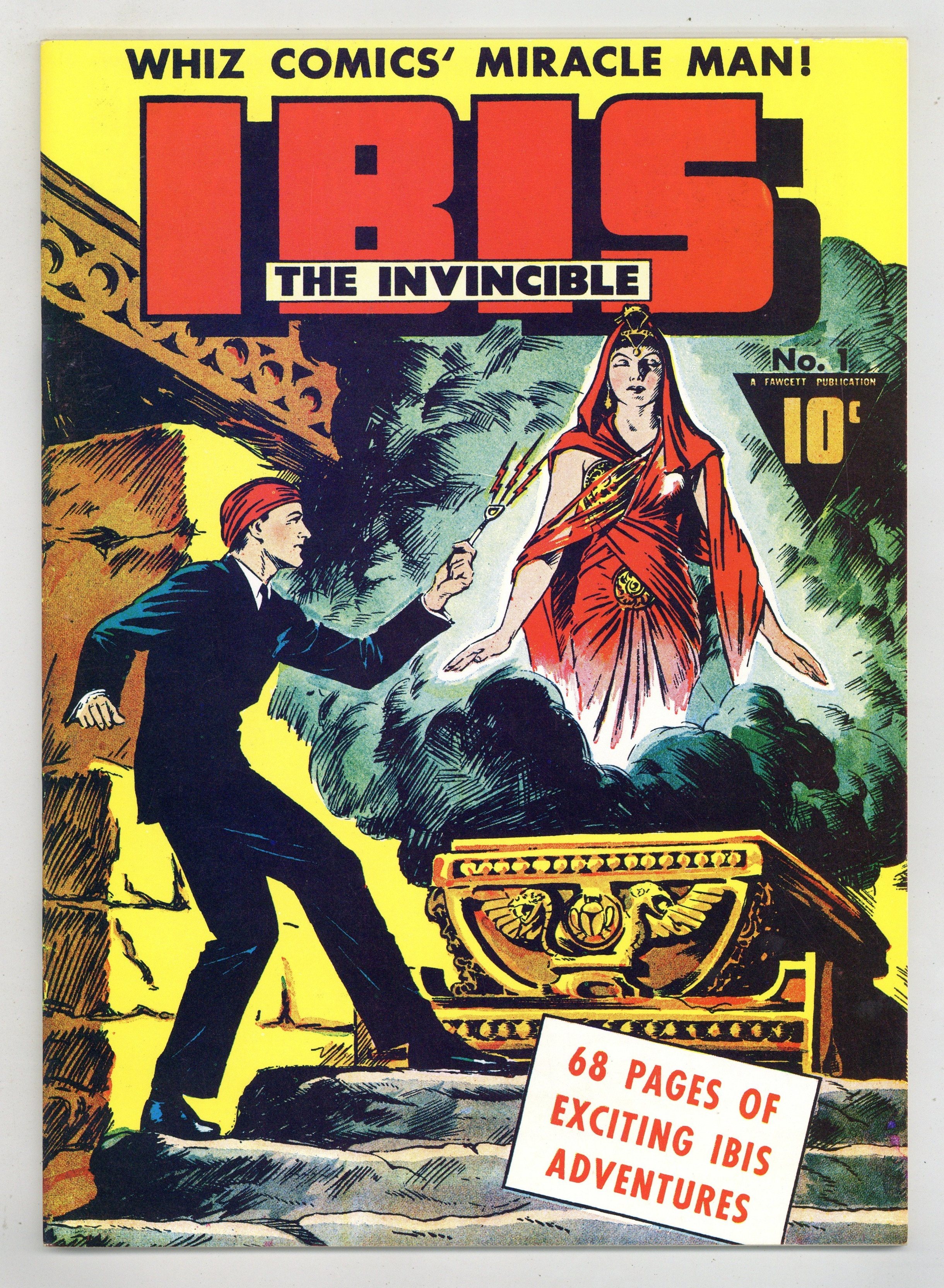 The 34th issue of the Flashback reprint series presents IBIS THE INVINCIBLE # 1 originally published in 1942 by Fawcett Publications. Four untitled Ibis stories. Sir Butch back-up story. full color cardstock covers, 7-1/2-in. x 10-3/8-in. black-and-white interior on white paper stock, saddle-stitched binding. Cover price $3.00.
