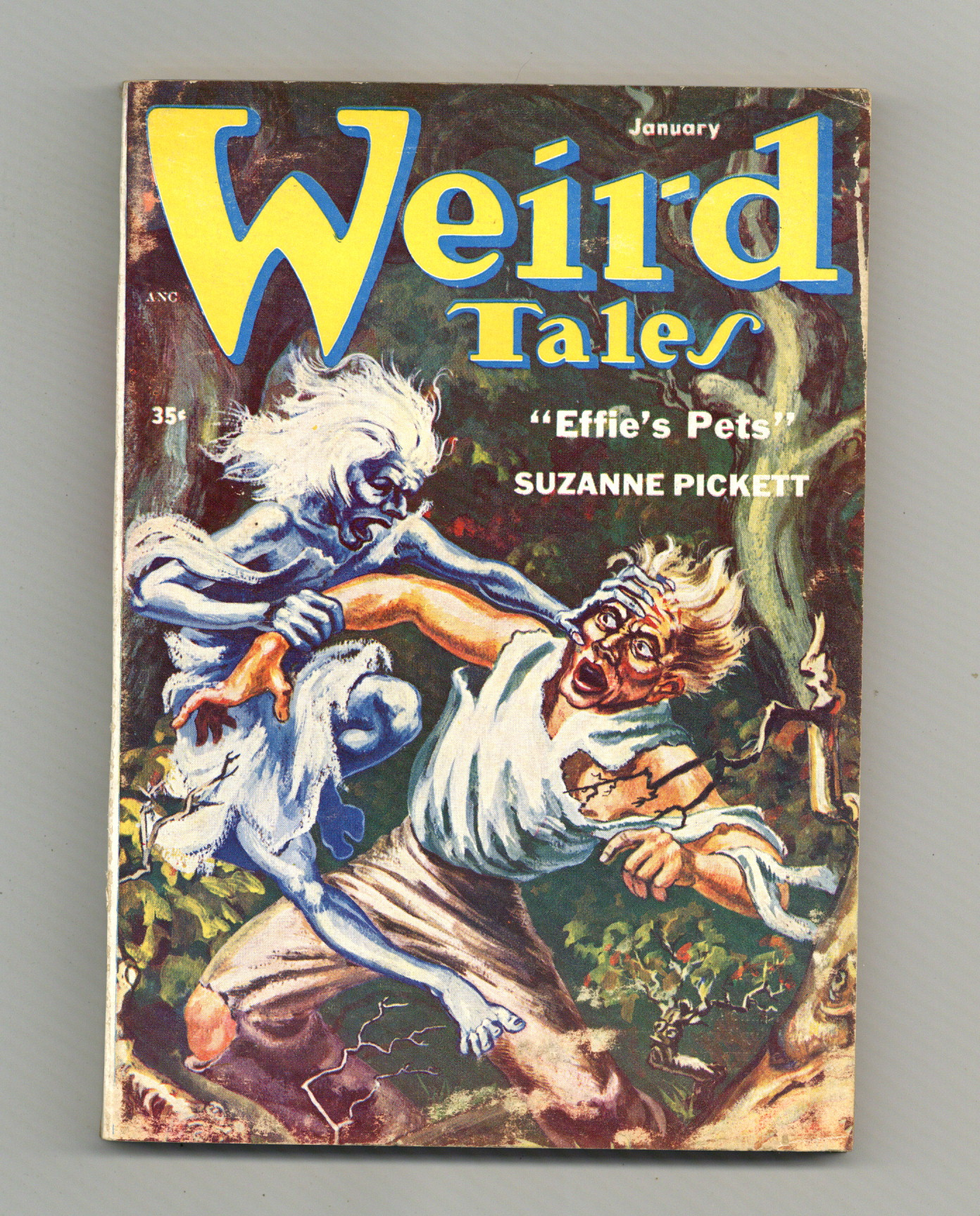Published Jan 1954 by Weird Tales.$72.00Volume 45, Issue 5 - January 1954. Cover by W.H. Silvey. Horror and supernatural fiction by Leah Bodine Drake, Suzanne Pickett, Farfal Delano, and W.J. Suprenant. 5 1/4" x 7 1/2";128 pages, Text (with B&W spot illustrations) Cover price $0.35.
