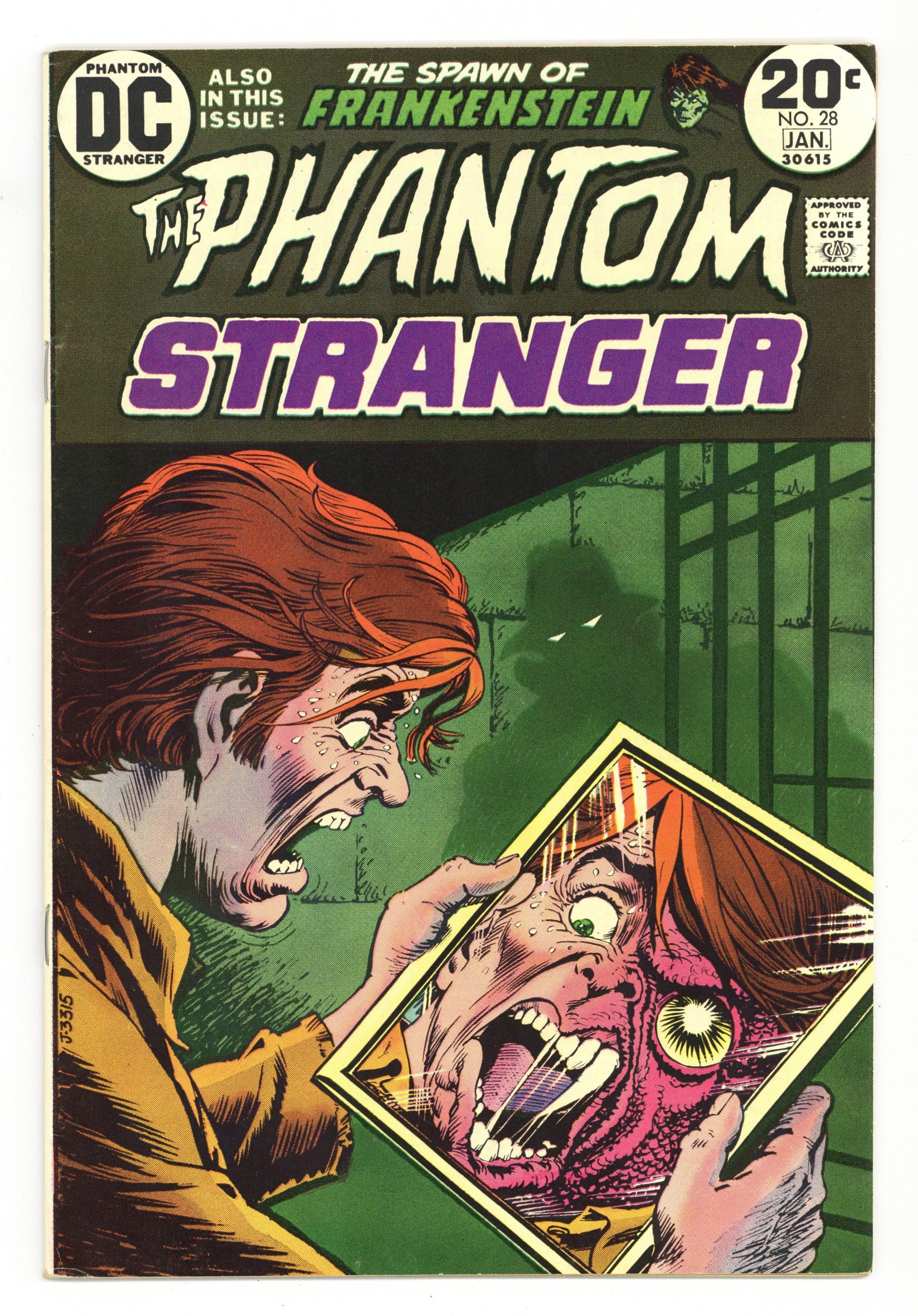 Cover art by Nick Cardy. "The Counterfeit Madman!", script by Arnold Drake, art by Gerry Talaoc; When Willie Limmick apparently pulls out a gun and holds an entire plane hostage for a ransom due to his split personality known as Joseph Gantz; However, the Phantom Strangers intervention ends with Willie being taken into police custody; The jury presiding over Willie's case believes that the man suffers from a split personality; The Phantom Stranger warns them not to be so quick to believe his story. "Night of the Snake God," script by Steve Skeates, art by Bernard Baily; The Spawn of Frankenstein is trying to save the life of a woman about to be sacrificed by a cult that worships a snake god; However, the jilted lover of the woman wants to kill the Spawn for interrupting his attempt for forcibly have his way with the woman; The monster disarms the man and saves the woman before she can be sacrificed by the cult; However in fleeing, the limbering monster accidentally kills her when his awkward limbering causes her to break her neck when her head strikes a tree. 36 pgs., full color. Cover price $0.20.