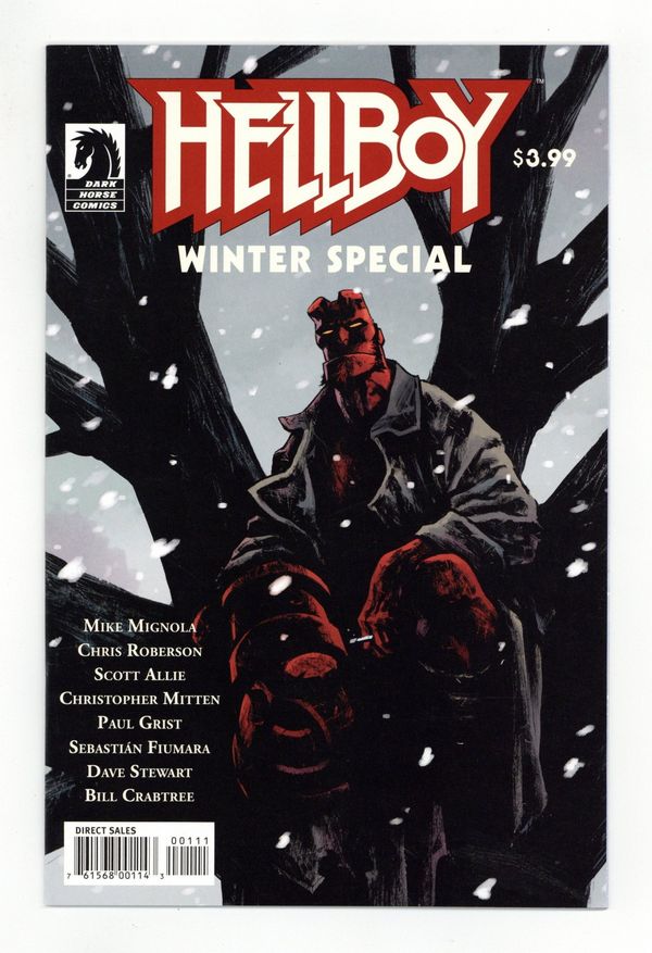 Published Jan 2017 by Dark Horse.$16.00Written by Mike Mignola, Chris Roberson and Scott Allie. Art by Christopher Mitten, Paul Grist and Sebastian Fiumara. Cover by Sebastian Fiumara. Three weird tales show the world of Hellboy through the years, with Edward Grey appearing alongside Sarah Jewell, hero of the recent Rise of the Black Flame series in 1890s London. In 1980s New England, Hellboy, Abe Sapien, and Liz Sherman set out on a simple search for some missing kids and encounter a tormented spirit seeking to share its pain. 32 pages. full color. Cover price $3.99.