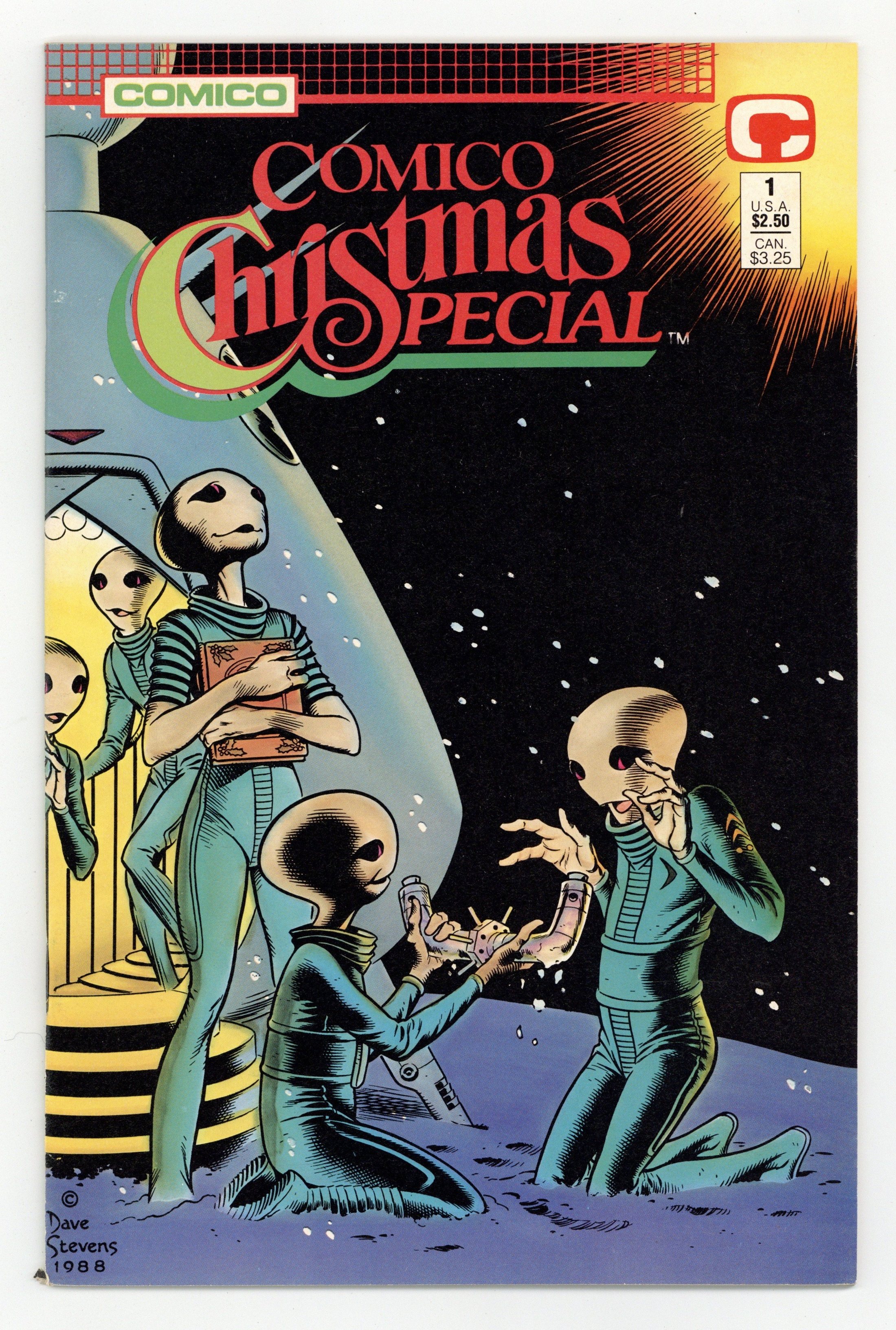 Cover by Dave Stevens. Stories by Doug Wheeler. Art by Ken Holewczynski, Bernie Mireault, Tim Sale, Bill Willingham, Steve Rude, Chris Warner and Al Williamson. Featuring: "Living for Christmas" by Doug Wheeler and Ken Holewczynski; "Too Many Santas" by Wheeler and Bernie Mireault; "The Stiflemix Diaries" by Wheeler and Tim Sale; shovelling in "One Winter Day" by Wheeler, Bill Willingham and Chris Warner; and aliens in "Traditions Everlasting" (cover story) by Wheeler, Steve Rude and Al Williamson. 40 pages, full color. Cover price $2.50.