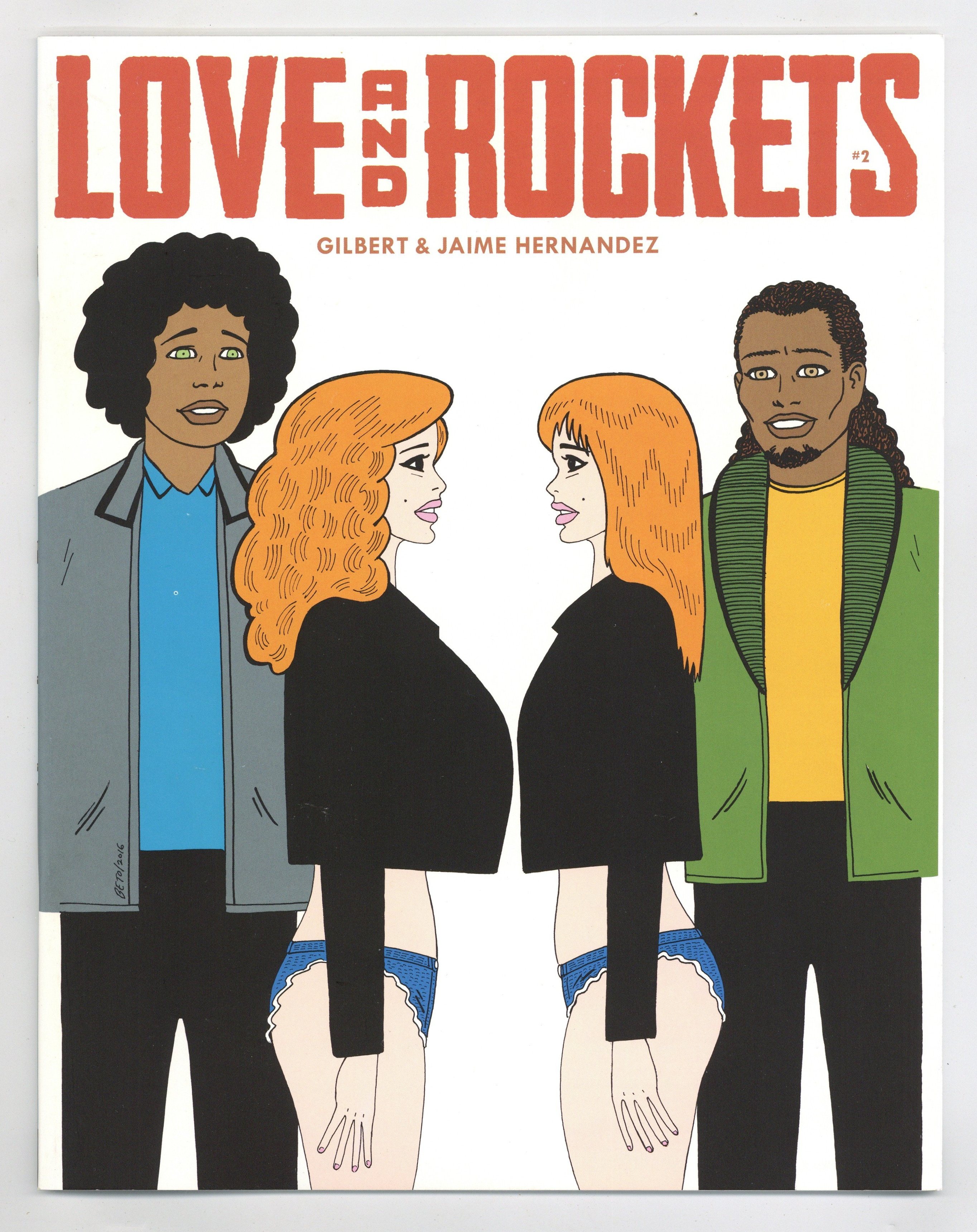 Published Mar 2017 by Fantagraphics.$14.00Story, Art and Cover by Gilbert Hernandez and Jaime Hernandez. The second issue of Love and Rockets picks right up from Issue #1! Over on Jaime's side, it's La Llorona's turn to hit the stage at the punk rock reunion and the Hellmets are closing in on Princess Animus. Is Hopey ready? Is Isla ready? Are you ready? On Gilbert's side, Fritz and her twin daughters meet, making Fritz crazier than ever, while Pipo and her new squeeze visit the mysterious Dr. Emil in prison in an effort to learn just what his secret cosmetic treatment actually is... 36 pages, B&W. Cover price $4.99.