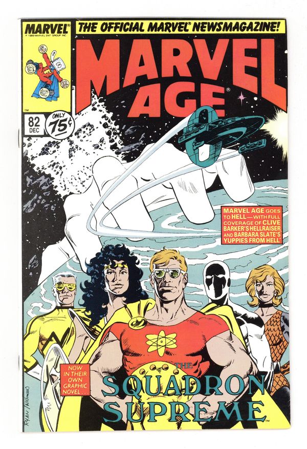 $9.00Rob Liefeld's New Mutants Sketchbook II; Mark Gruenwald discusses Squadron Supreme: Death of a Universe graphic novel; 2-page Fred Hembeck strip; a look at Epic's Nightbreed, Hellraiser and The Art of Moebius; Barbara Slate discusses Yuppies from Hell. Squadron Supreme cover by Paul Ryan and Al Williamson. Cover price $0.75.