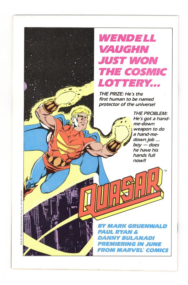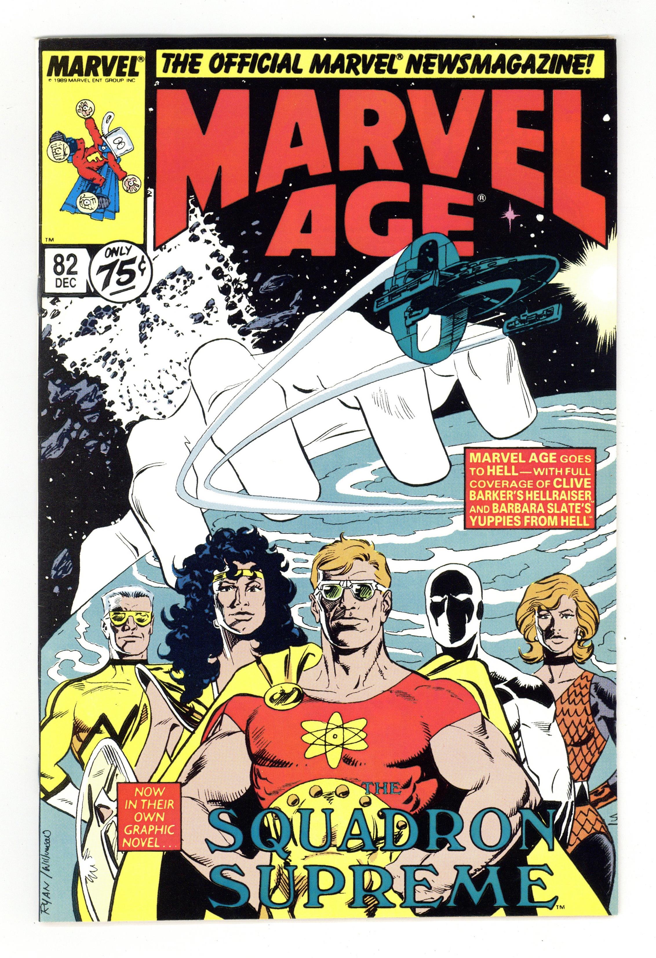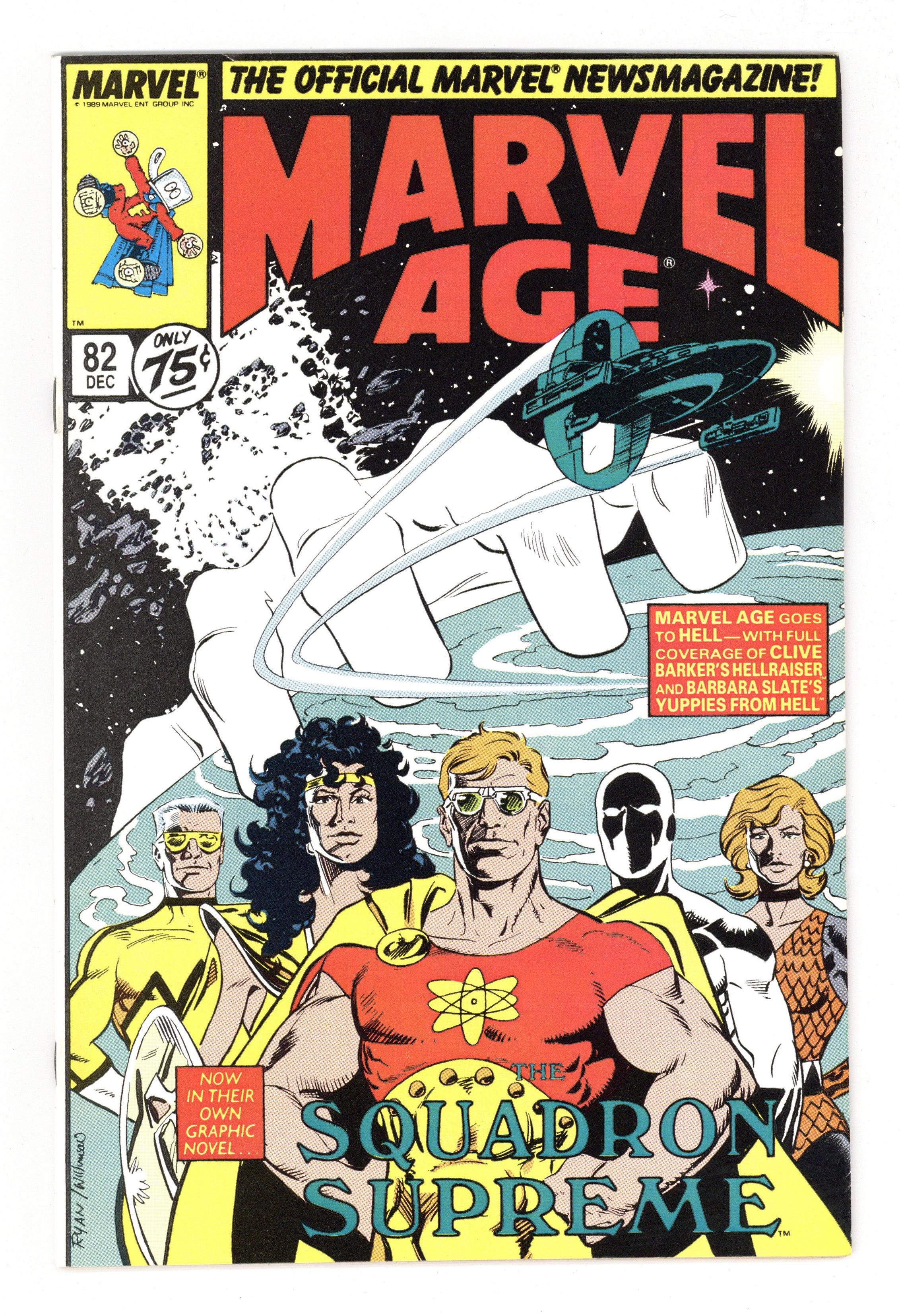 $2.65Rob Liefeld's New Mutants Sketchbook II; Mark Gruenwald discusses Squadron Supreme: Death of a Universe graphic novel; 2-page Fred Hembeck strip; a look at Epic's Nightbreed, Hellraiser and The Art of Moebius; Barbara Slate discusses Yuppies from Hell. Squadron Supreme cover by Paul Ryan and Al Williamson. Cover price $0.75.