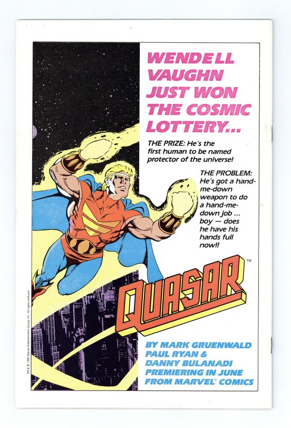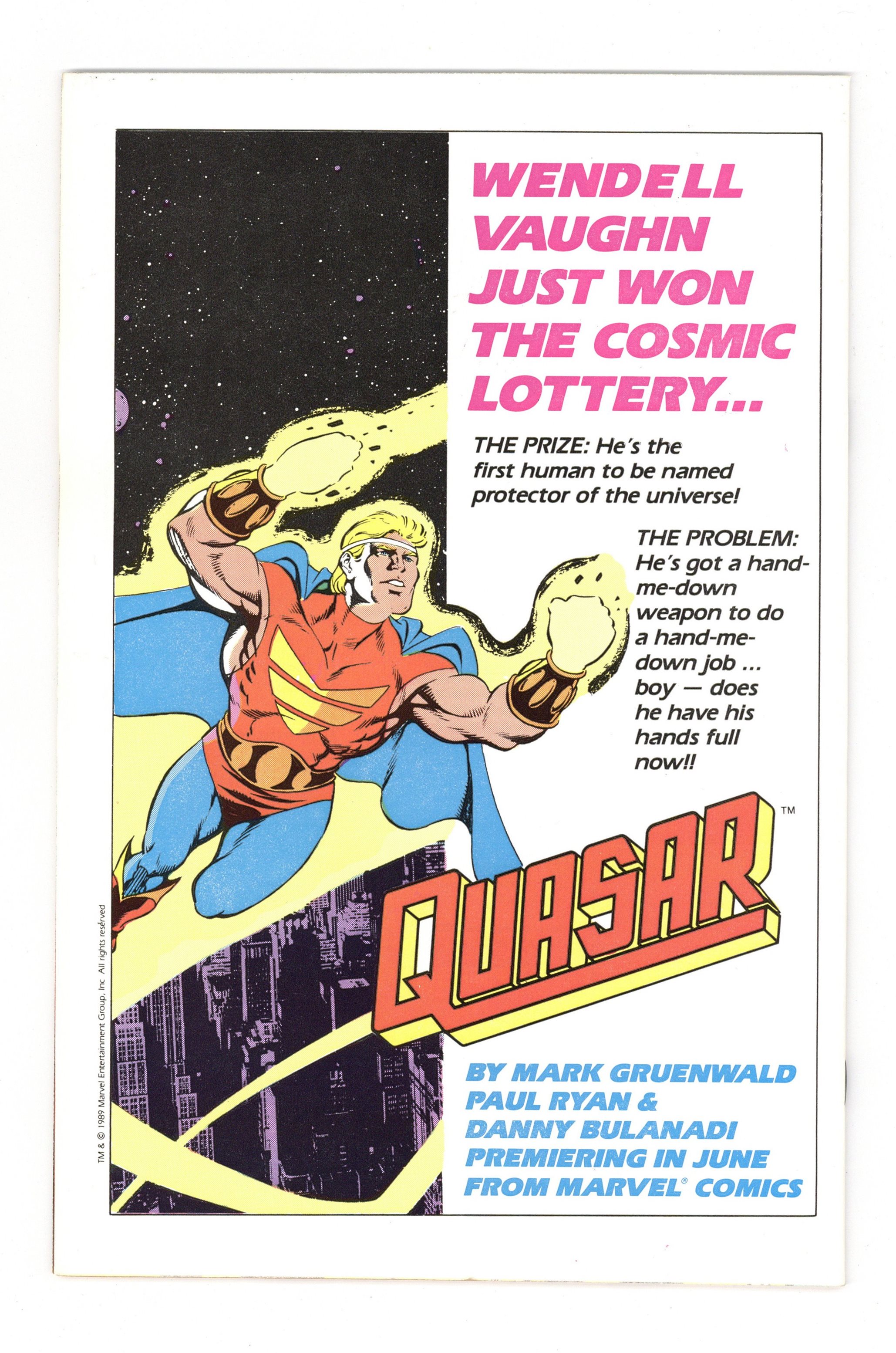 Rob Liefeld's New Mutants Sketchbook II; Mark Gruenwald discusses Squadron Supreme: Death of a Universe graphic novel; 2-page Fred Hembeck strip; a look at Epic's Nightbreed, Hellraiser and The Art of Moebius; Barbara Slate discusses Yuppies from Hell. Squadron Supreme cover by Paul Ryan and Al Williamson. Cover price $0.75.