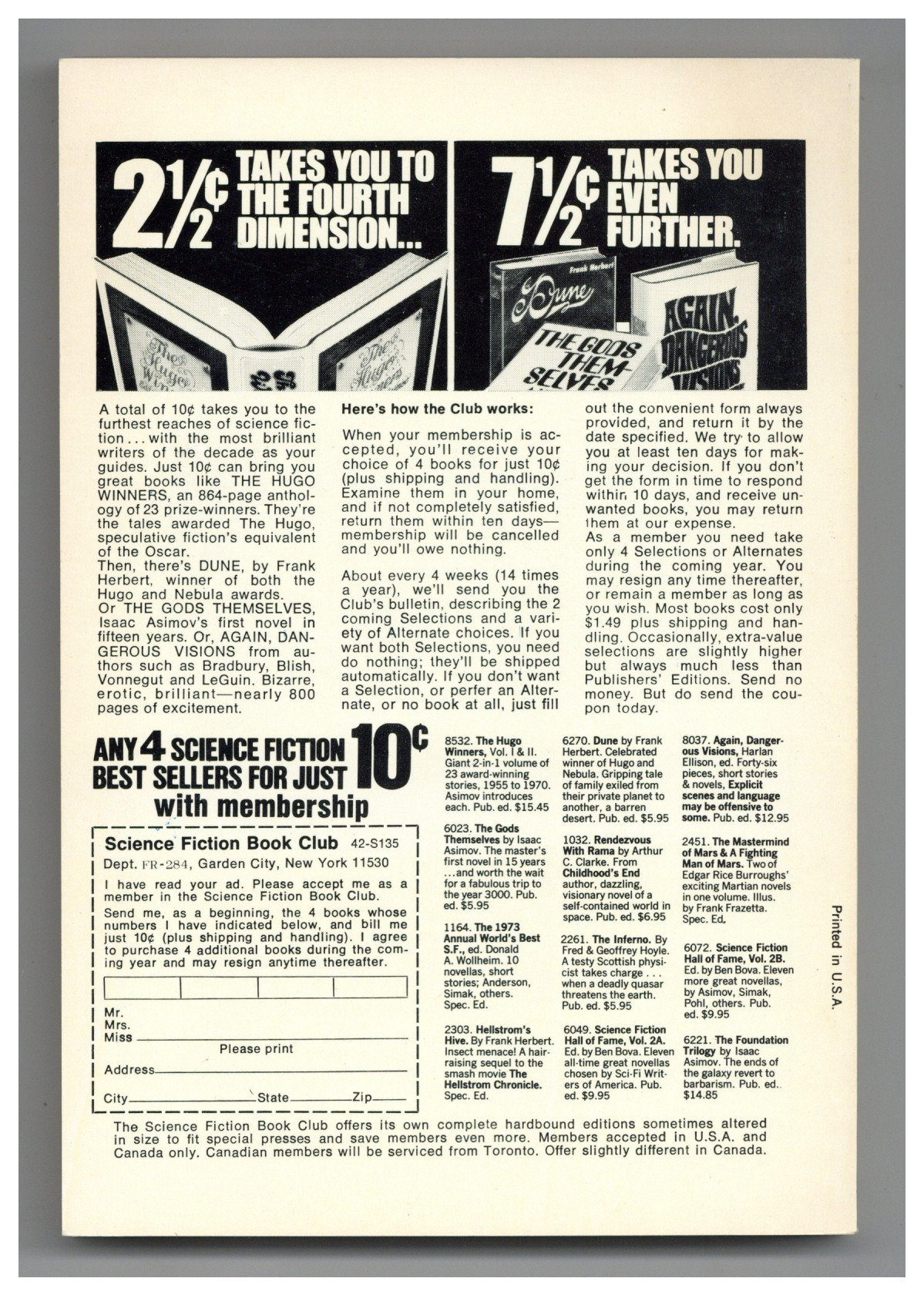 October 1974. Cover by Jack Gaughan. Science fiction stories by Edgar Pangborn, Arsen Darnay, David Drake, James F. Lacey, H. Carl Hill, Mal Warwick, John Christopher, Tim Altom. Illustrations by Fabian, Gaughan, Freff, Marrs, Wendy Pini. 5-1/4-in. x 7-1/4-in.; b&w text with spot illustrations; 192 newsprint pages. Cover price $0.75.