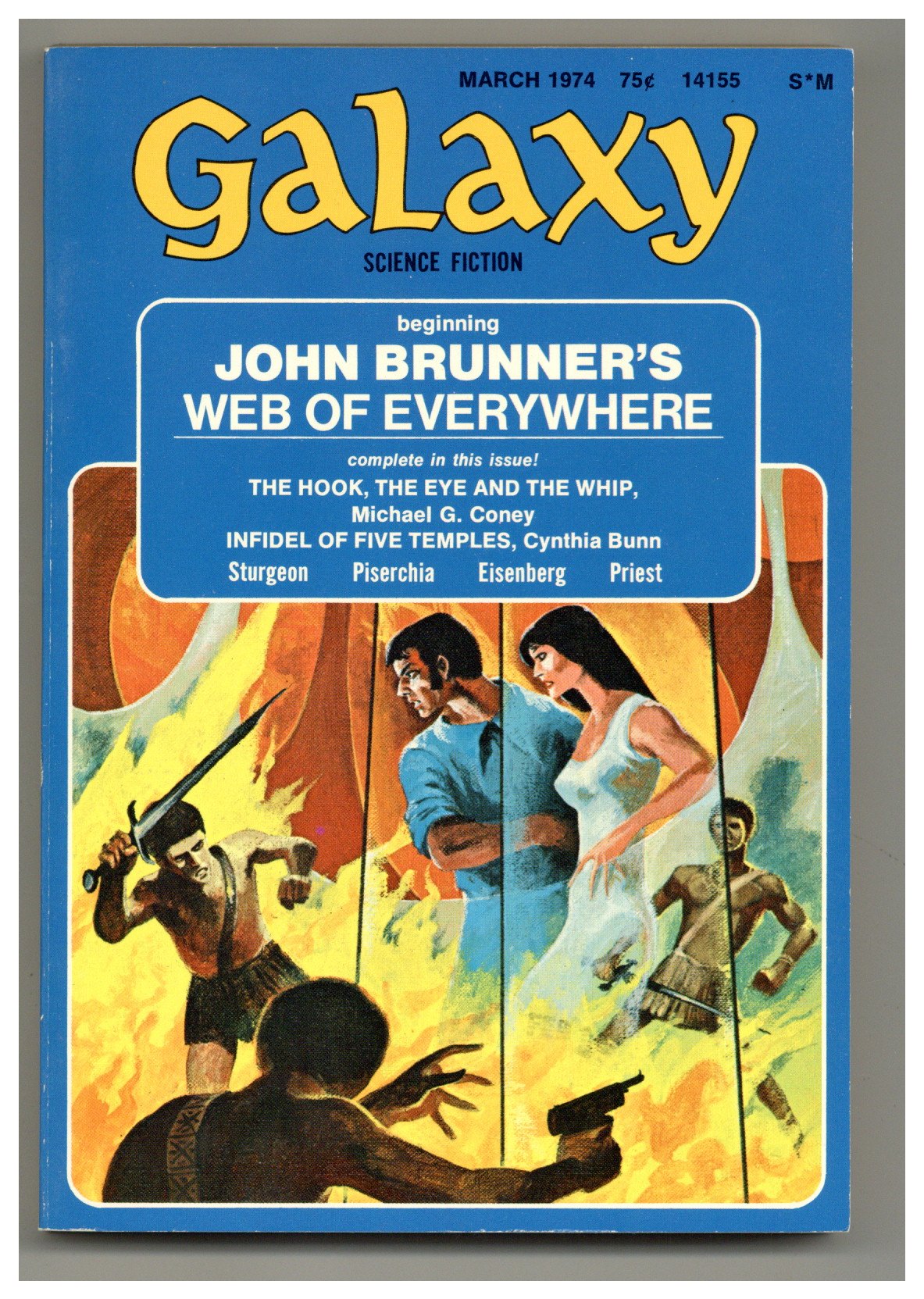 Published Mar 1974 by Galaxy Publications.$18.00Cover by Jack Gaughan. Science fiction stories by John Brunner, Christopher Priest, Michael G. Coney, Cynthia Bunn, Doris Piserchia, David Penny, Larry Eisenberg. Illustrations by Jack Gaughan. 5-1/4-in. x 7-1/4-in.; b&w text with spot illustrations; 176 newsprint pages. Cover price $0.75.