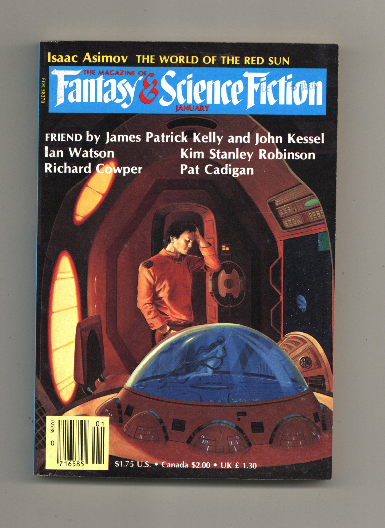Volume 66, Issue 1 - January 1984. Cover by Thomas Kidd. Fantasy and Science Fiction stories by James Patrick Kelly, John Kessel, Pat Cadigan, Ian Watson, Gregg Keiser, John Morressy, Richard Cowper, Mary C. Pangborn, Kim Stanley Robinson. Softcover. 5-in. x 7-in., 162 pages, text (with B&W illustrations). Cover price $1.75.