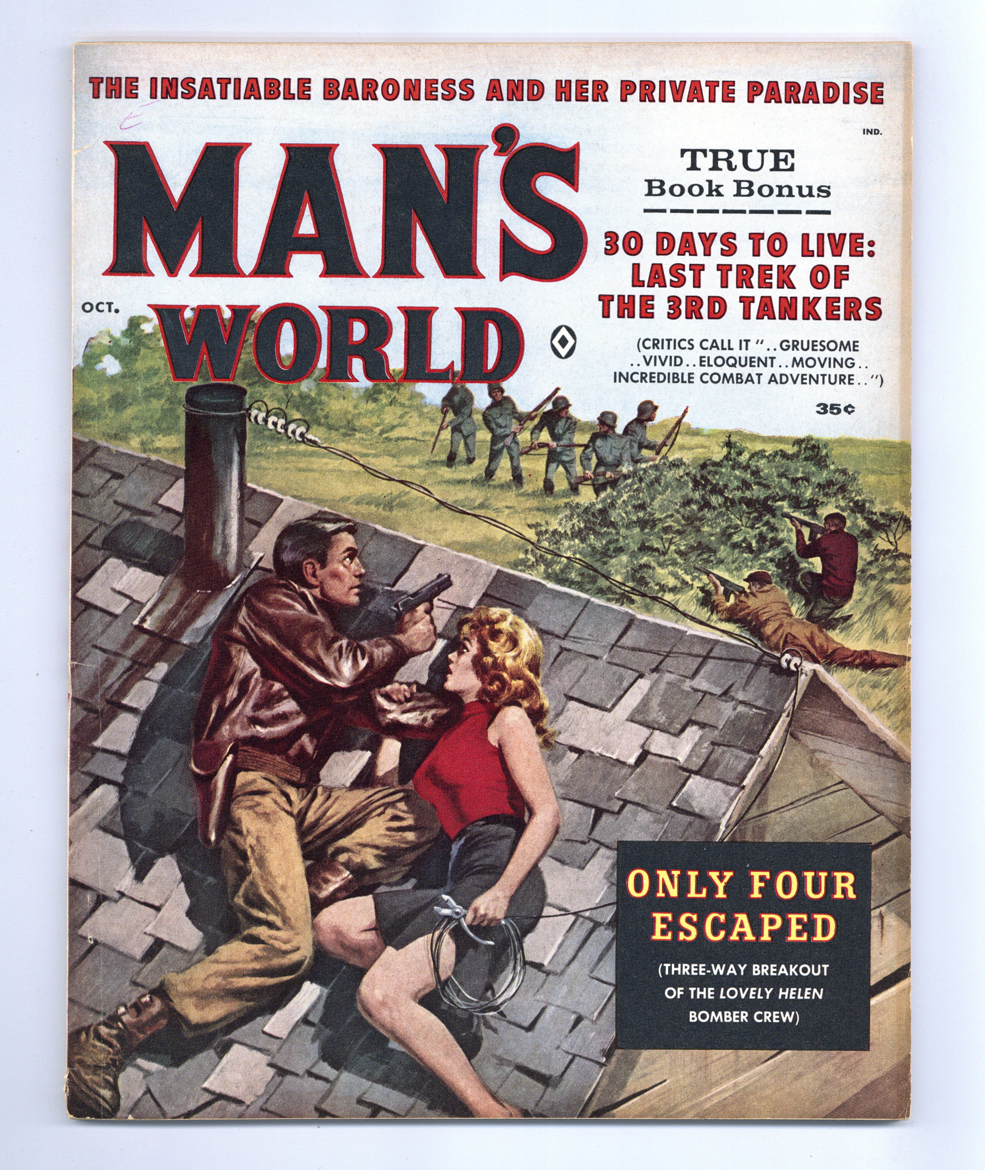 Published Oct 1961 by Medalion Publishing.$19.00Volume 7 - Issue 5, October,1961. Cover by Harry Schaare. Men's Interest magazine, stories on war, crime,adventure, and pinups. 8 1/2-in. x 11-in. 90 pages B&W. Cover price $0.35.