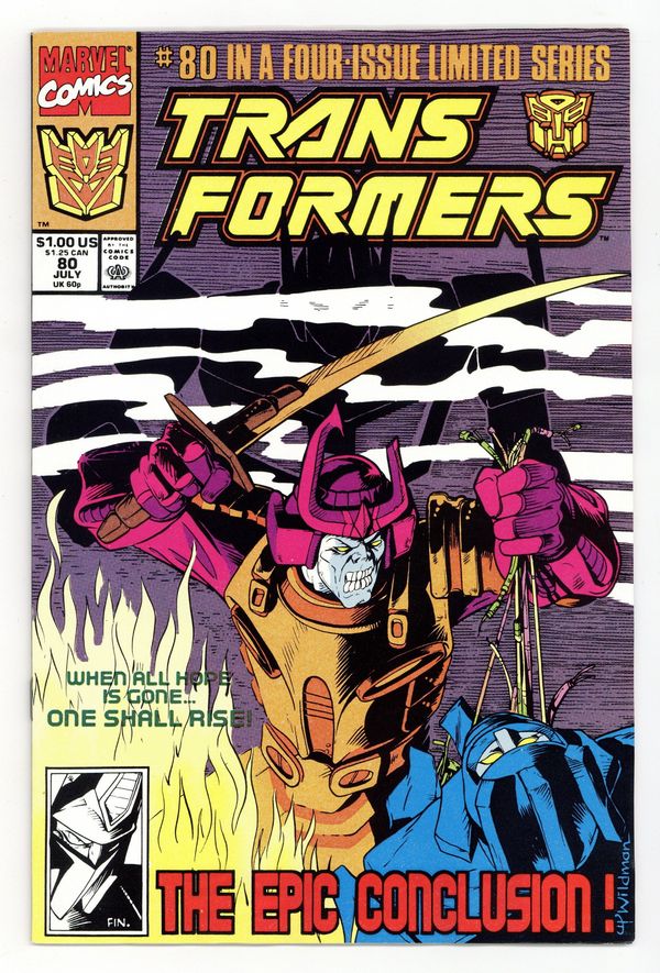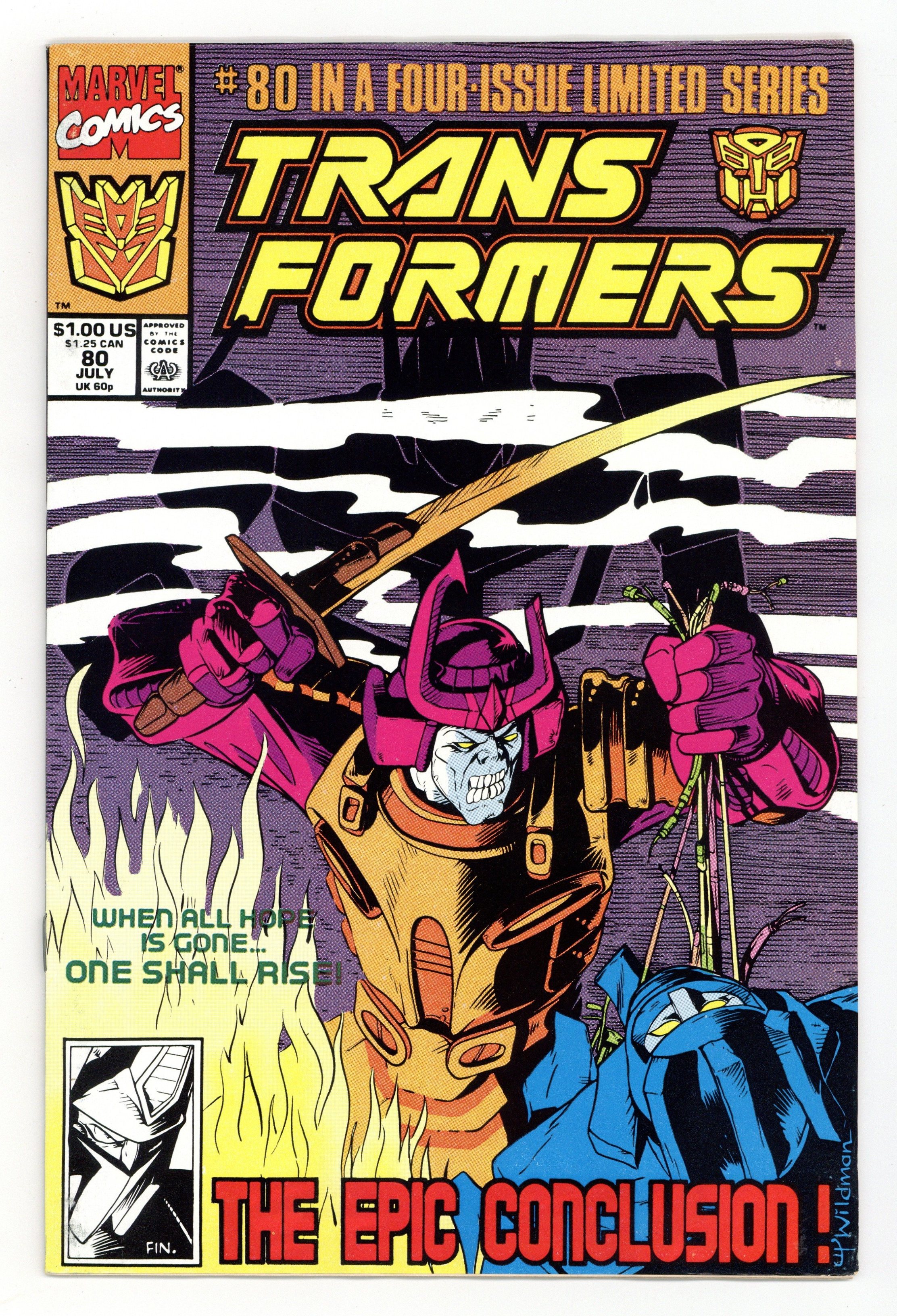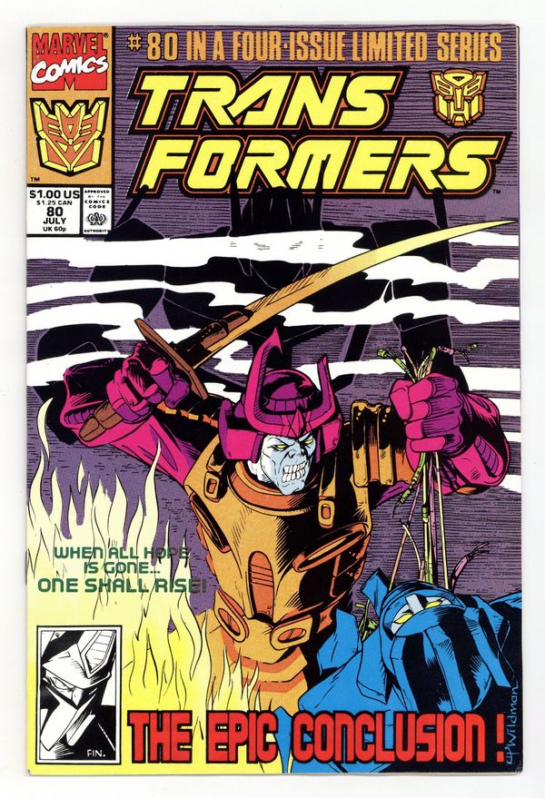 Tags: Transformers$60.00Direct Edition. Cover pencils by Andrew Wildman, inks by Stephen Baskerville. "End of The Road!", script by Simon Furman, pencils by Andrew Wildman, inks by Stephen Baskerville; The Autobots have lost on Klo to the Decepticons; All hope seems to be lost until Optimus Prime is reborn by the Last Autobot using Hi-Q (with Prime's memories) as the template; The defeated Decepticons then leave Klo, but plot other plans against the Autobots. 36 pgs., full color. Cover price $1.00.