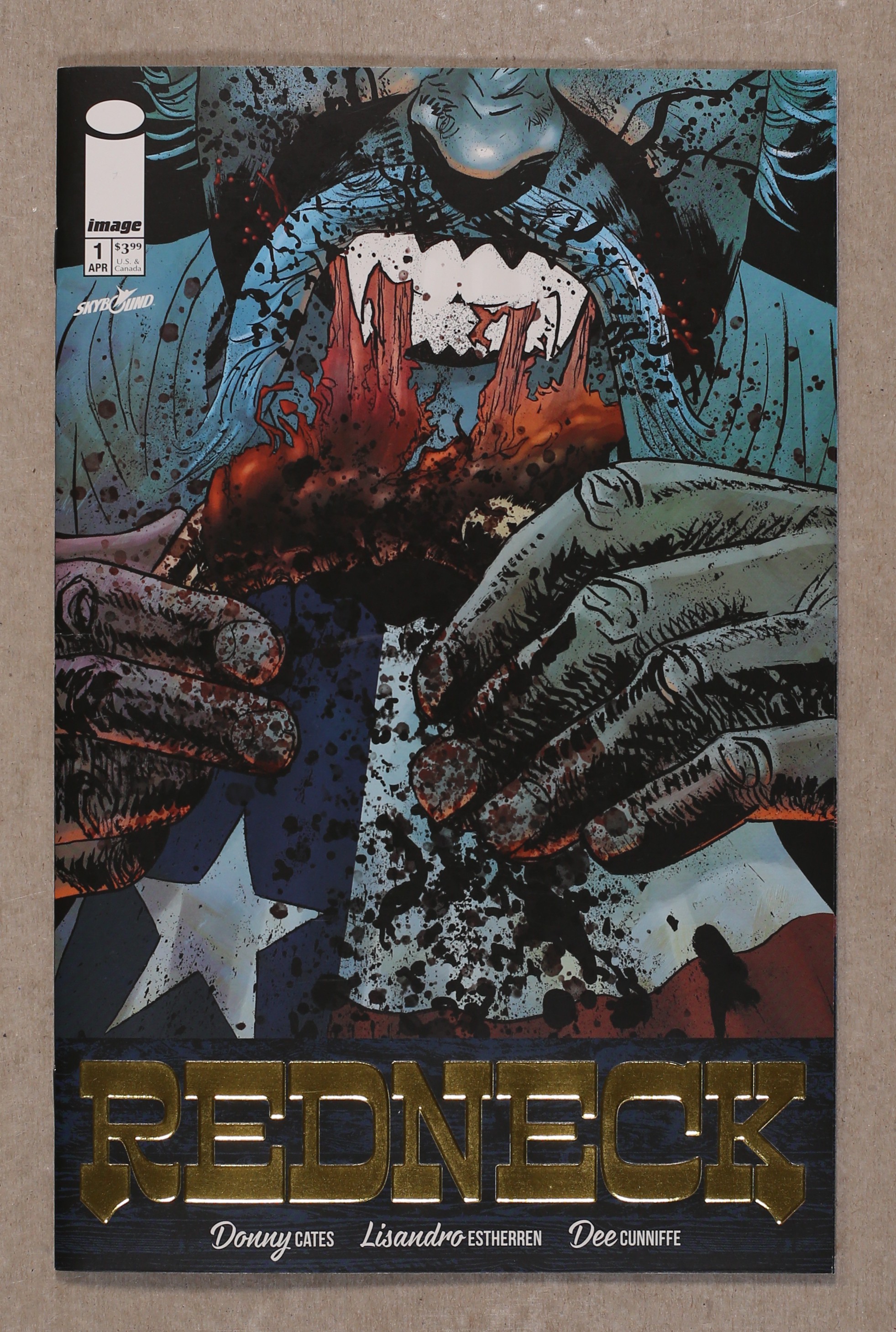 Retailer Incentive edition. Written by Donny Cates. Art and Cover by Lisandro Estherren and Dee Cunniffe. SERIES PREMIERE The Bowmans are VAMPIRES who have quietly run the local barbecue joint in their small town for years, living off cow's blood. Their peaceful coexistence ends as generations of hate, fear, and bad blood bubble to the surface--making it impossible to separate man from monster! Critically acclaimed writer DONNY CATES (GOD COUNTRY) and artist LISANDRO ESTHERREN serve up the tale of a DIFFERENT kind of family just trying to get by, deep in the heart of Texas. 28 pages, full color. Rated M Cover price $3.99.