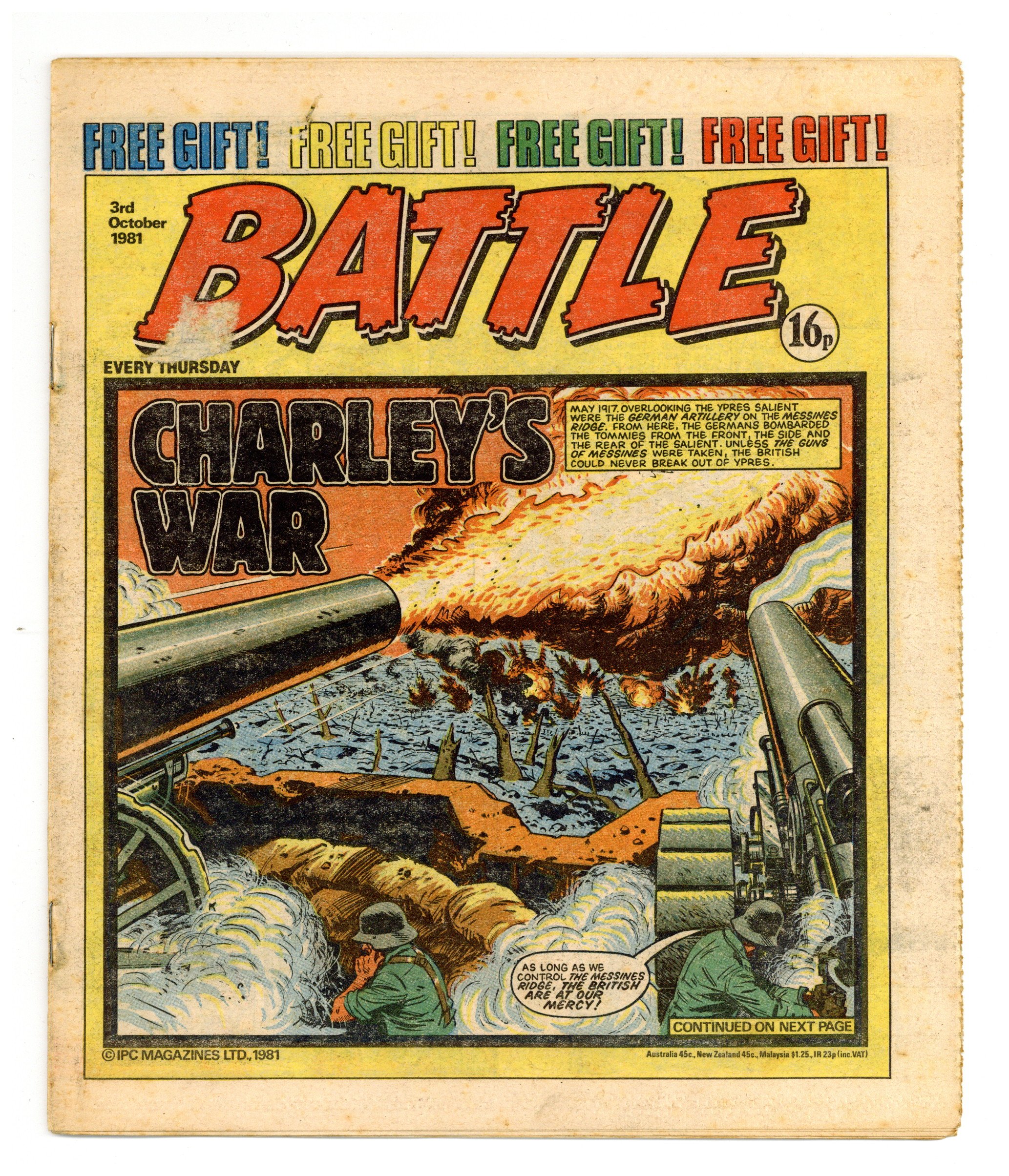 October 3, 1981. Published by IPC Magazines, Ltd. in the U.K. "Tough action war stories every week!" Combined with Valiant (also an IPC publication). 9 x 11 in.; black and white (color centerspread); 32 pages; 16p cover price.