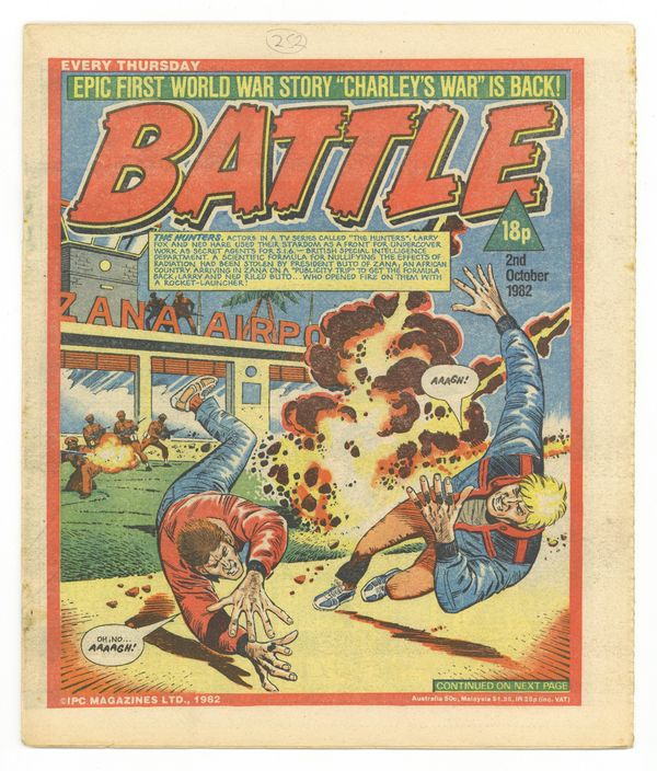 October 2, 1982. Published by IPC Magazines, Ltd. in the U.K. "Tough action war stories every week!" Combined with Valiant (also an IPC publication). 9 x 11 in.; black and white (color centerspread); 32 pages; 18p cover price.