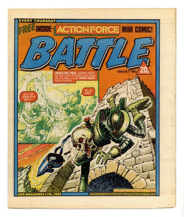 July 16, 1983. Published by IPC Magazines, Ltd. in the U.K. "Tough action war stories every week!" Combined with Valiant (also an IPC publication). 9 x 11 in.; black and white (color centerspread); 32 pages; 20p cover price.