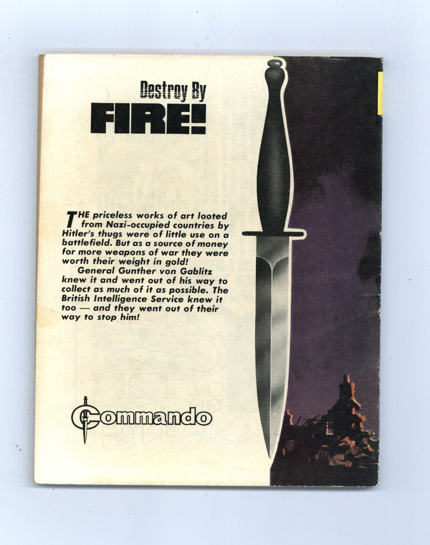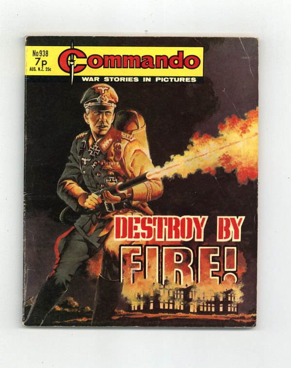 Weekly British War comics digest. "Destroy by Fire!" Softcover, 5 1/2-in. x 6 1/2-in., 68 pages, B/W.