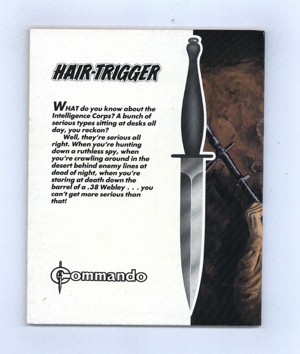 Published Apr 1988 by D. C. Thomson.$9.00Weekly British War comics digest. "Hair-Trigger" Softcover, 5 1/2-in. x 6 1/2-in., 68 pages, B/W.