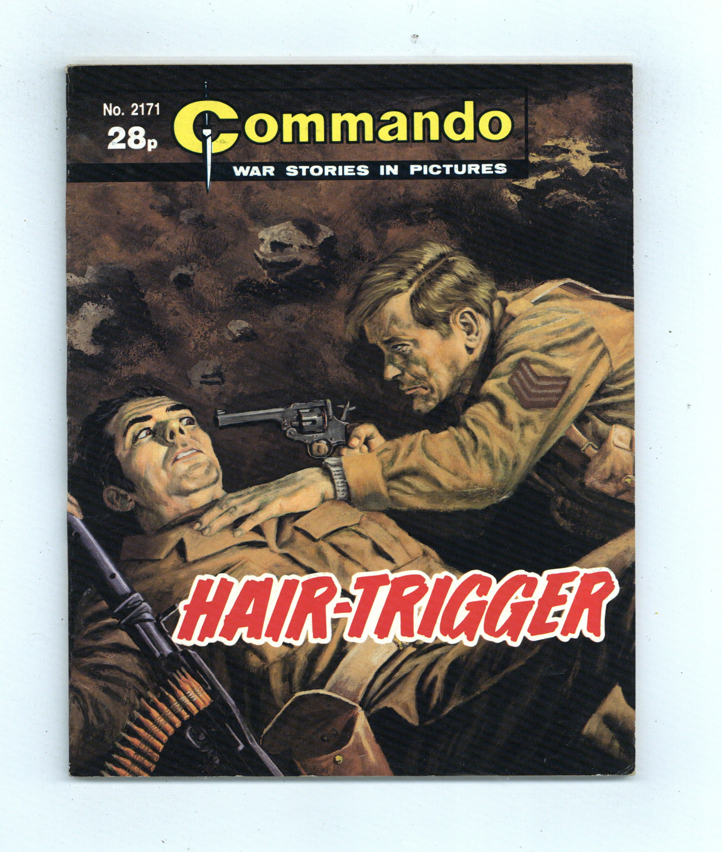 Weekly British War comics digest. "Hair-Trigger" Softcover, 5 1/2-in. x 6 1/2-in., 68 pages, B/W.