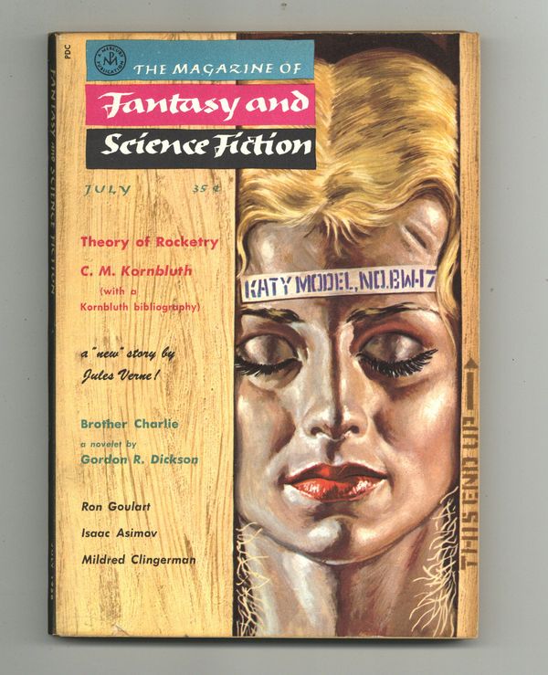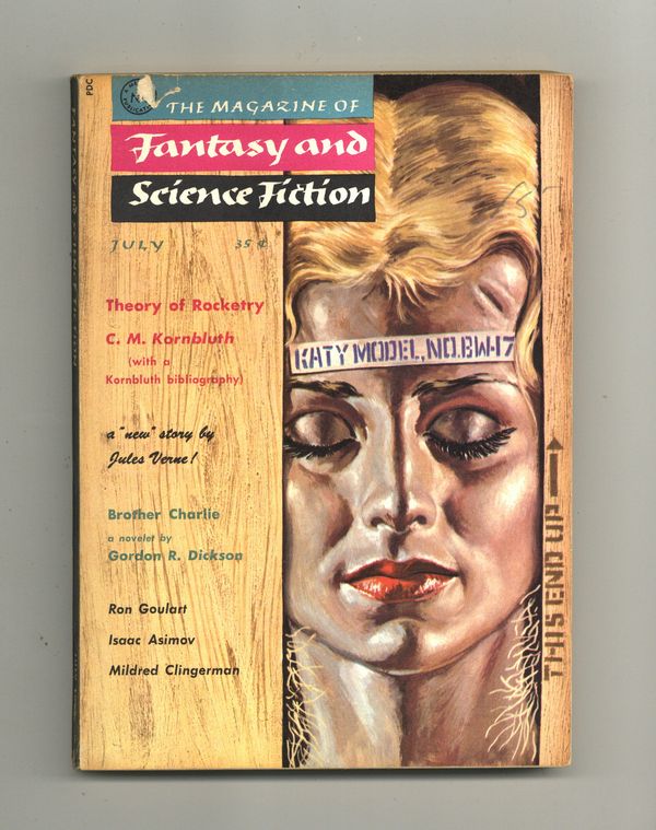Tags: Anthology / CollectionPublished Jul 1958 by Mercury Publications.$24.00Cover by Barry Waldman. Science fiction and fantasy stories by Gordon R. Dickson, Kit Reed, Jules Verne, Mildred Clingerman, Ron Goulart, Issac Asimov, Roy Vickers, Stephen Barr, Michael Fessier and C. M. Kornbluth. Softcover, 5.5-in., x 7.5-in., 130 pages, black and white (all text) Cover price $0.35.