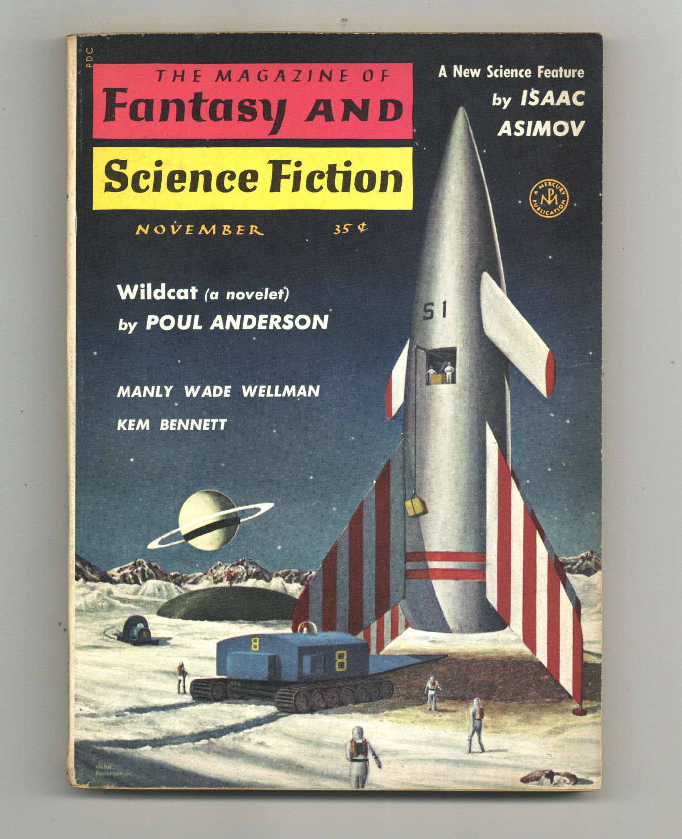 Cover by John Pederson. Science fiction and fantasy stories by Kem Bennett, Michael Fessier, Issac Asimov, A. Bertram Chandler, Avram Davidson, Poul Anderson, Jack Williamson, Robert Arthur, Carol Emshwiller, P. Schuyler Miller and Manly Wade Wellman. Softcover, 5.5-in., x 7.5-in., 132 pages, black and white (all text) Cover price $0.35.