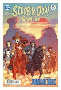 Written by Sholly Fisch. Art and Cover by Dario Brizuela. Howdy partners! There's a Wild West mystery to be solved by a crew of city slickers and their dog. Ya see, the cattle have skedaddled, and there's a ghost in cahoots up in them there hills. Can our sleuths solve the mystery and send this yokel to the hoosegow? Or will these greenhorns miss the hoedown? Time to pony up. Giddy up, li'l Scooby, let's go! 32 pages, full color. Rated E Cover price $2.99.