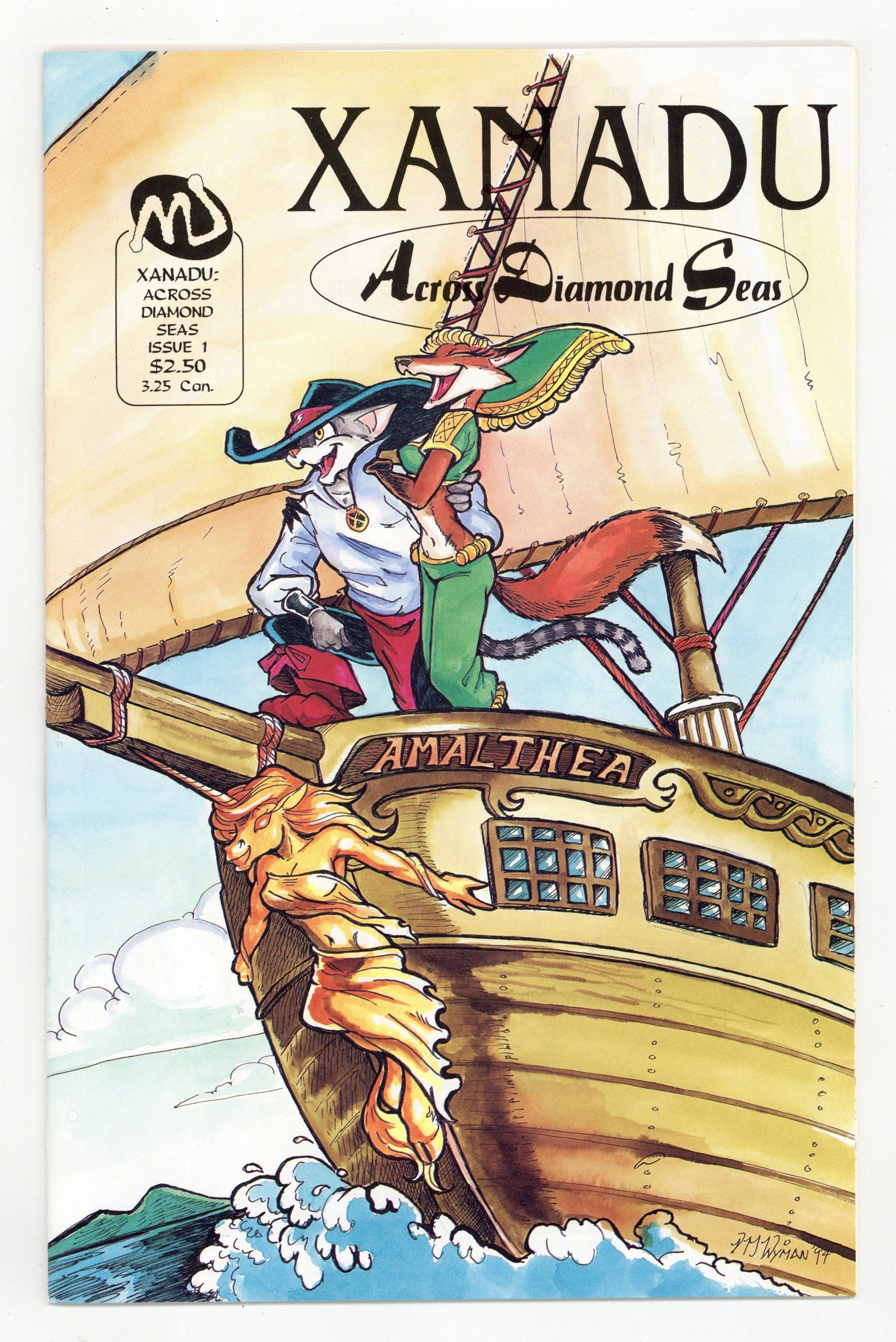 Story, art and cover by Vicky Wyman. A seabound adventure of the acclaimed furry fantasy series by Wyman. The unicorn Empress Alicia and her courtiers are on their way to an affair of state, when their ship is targeted by a pair of magical twins. 32 pages, B&W. Mature Readers. Cover price $2.50.