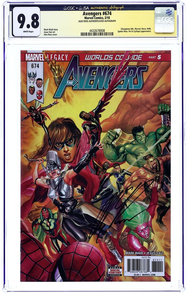 Tags: Marvel Legacy Numbering: Avengers (part 674), Worlds Collide (Marvel) (part 5), Avengers, Marvel Legacy (2017)$175.00- CGC Signature Series