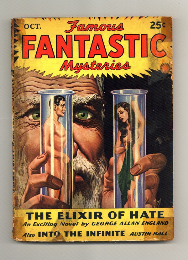 Volume 4, Issue 6 - October, 1942. Cover by Virgil Finlay. "The Elixir of Hate" by George Allan England and "Into the Infinite" by Austin Hall. Illustrations by Virgil Finlay and Frank R. Paul. Softcover Pulp, 6 1/2-in x 9 1/2, 130 Pages, B&W. Published by Frank A. Munsey Cover price $0.25.