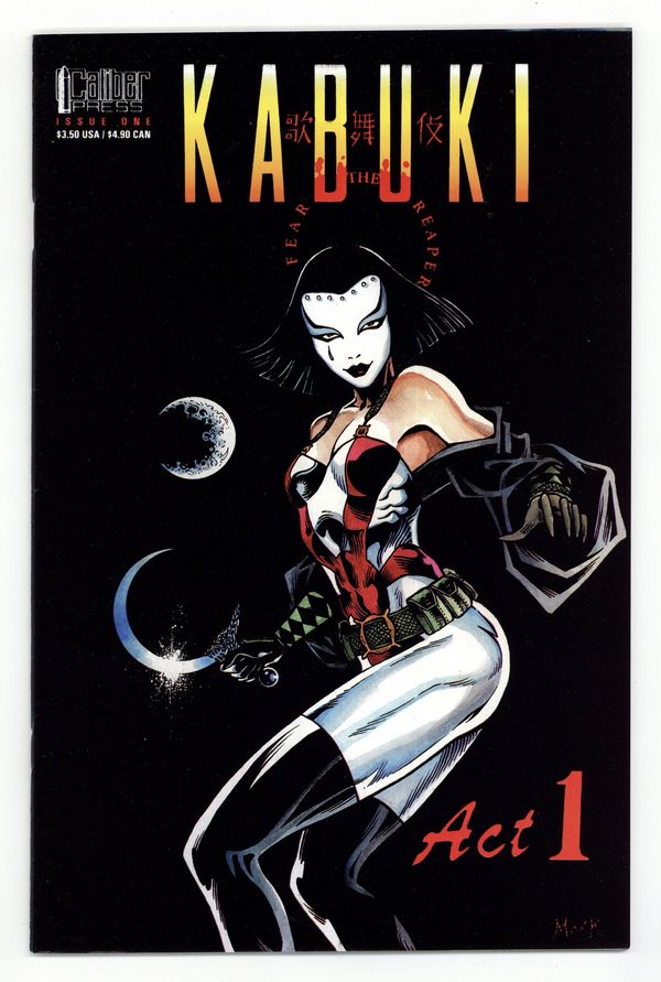 Story, art and cover by David Mack. The one-shot that launched Macks acclaimed Kabuki series. In an alternate-reality Japan, the masked female assassin known as Kabuki goes after a media mogul with connections to a Yakuza leader. Includes a Kabuki sketchbook by Mack. Also known as Kabuki: Fear the Reaper. Followed by Kabuki: Dance of Death and the Circle of Blood miniseries. 48 pages, B&W. Mature readers. Cover price $3.50.