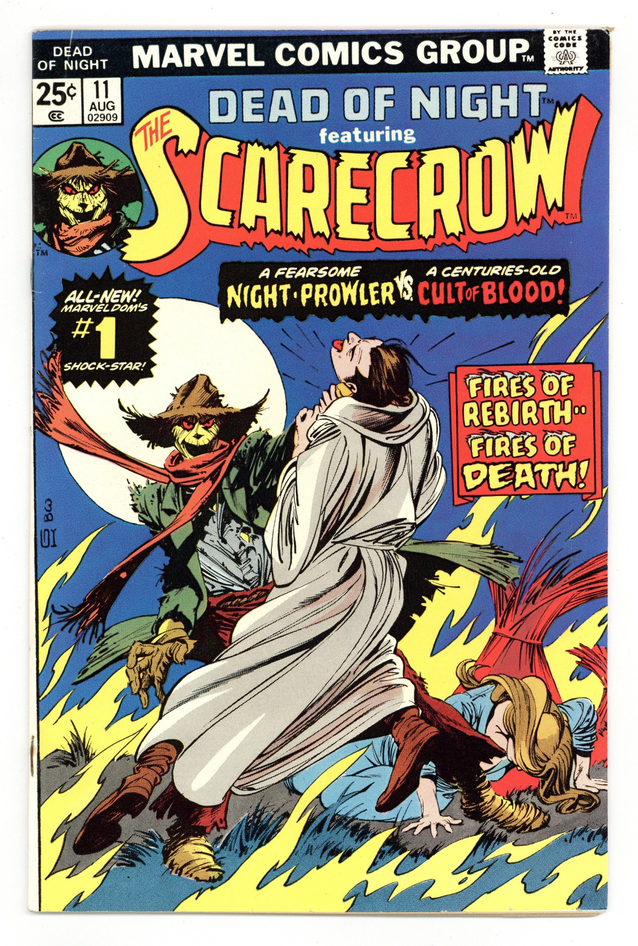 Cover pencils by Gil Kane, inks by Bernie Wrightson. Enter: The Scarecrow, script by Scott Edelman, art by Rico Rival; A scarecrow with supernatural powers apparently emerges from a painting to battle an evil cult. House ad for Marvel Treasury Edition #5, pencils by John Romita. Ad for the GI Joe Adventure Team toys from Hasbro. Hostess Twinkies ad with Captain Marvel, pencils by Ross Andru, inks by Mike Esposito. Scott Edelman discusses the genesis of the Scarecrow character, pencils by John Romita. 32 pgs.$0.25. Cover price $0.25.