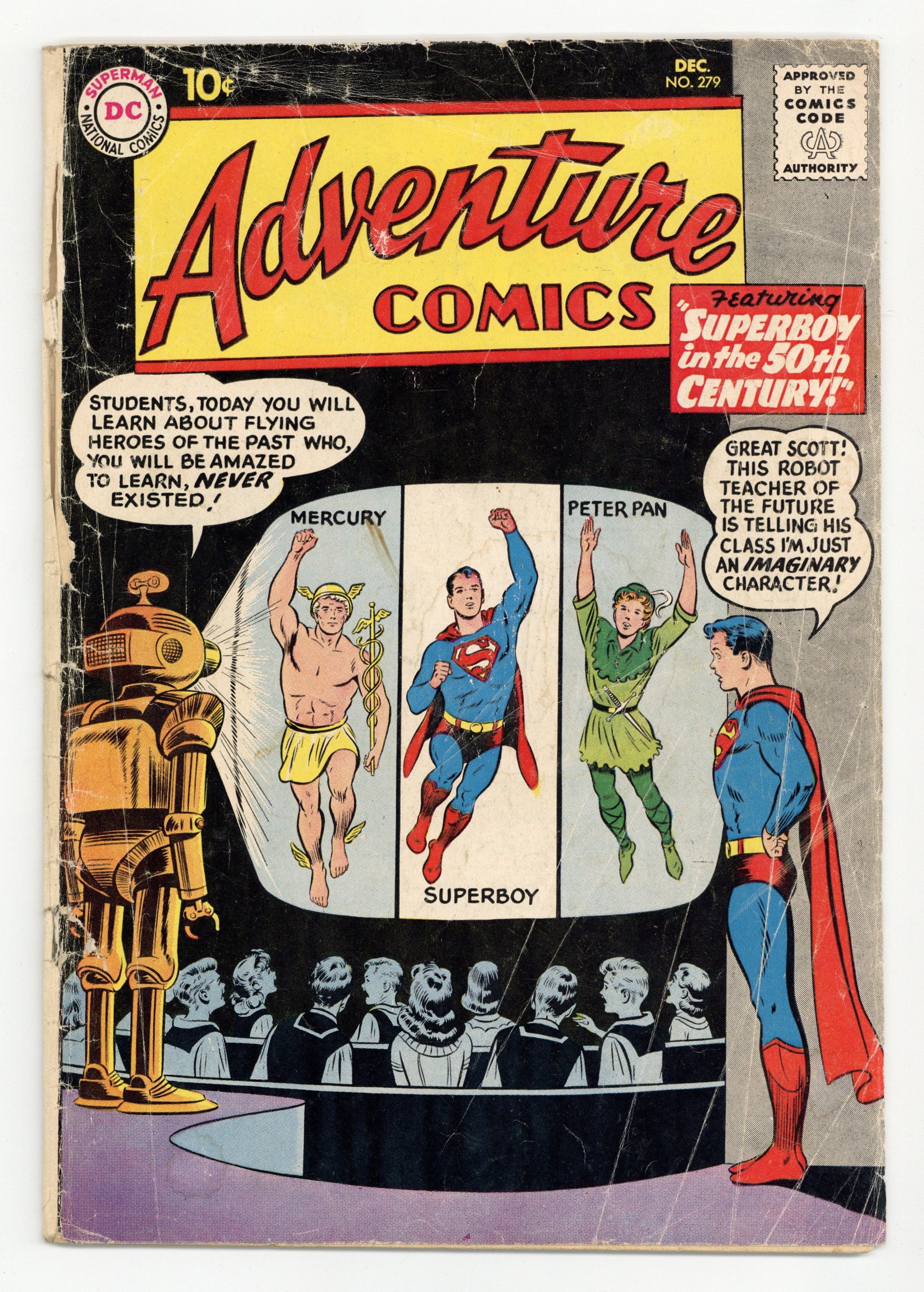 Cover pencils by Curt Swan, inks by Stan Kaye. Superboy Visits the 50th Century, script by Otto Binder, pencils by Curt Swan, inks by John Forte; Superboy visits the 50th century where everyone considers him to be just a legend. Little Pete humor page by Henry Boltinoff. The Sacrifice of Congorilla, script by Robert Bernstein, art by Howard Sherman; Congorilla helps Wazumi earns the respect of the Maboli tribe. Little Pete humor page by Henry Boltinoff. Silly Sailors Of The Sea!, script by Robert Bernstein, art by Ramona Fradon. 36 pages, Full Color. Cover price $0.10.