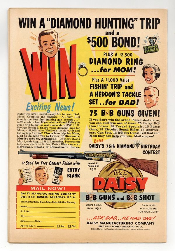 Cover pencils by Curt Swan, inks by Stan Kaye. War of the Superboys, script by Jerry Siegel, art by George Papp; Bad boy Dev-Em escapes Krypton and arrives on Earth. Shorty humor page by Henry Boltinoff. 1st Bizarro Perry White and Jimmy Olsen in Jimmy Olsen's Kookie Scoops--Tales of the Bizarro World, script by Jerry Siegel, art by John Forte; Jimmy accidentally gets transported to the Bizarro World and tries to work for the Bizarro newspaper. 36 pages, Full Color. Cover price $0.10.