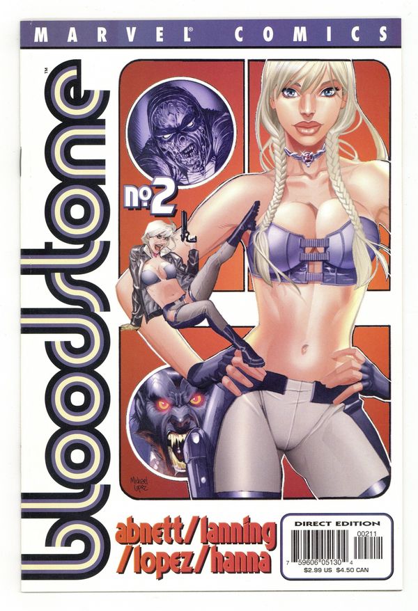 Cover by Michael Lopez. Dan Abnett and Andy Lanning (w). Michael Lopez (p). Scott Hanna (i). Dracula strikes the new Bloodstone! Elsa Bloodstone has inherited her father's powers, but will she follow in his footsteps and wind up dead, as well?! The brand new Bloodstone meets up with one of her father's greatest enemies, the deadly Dracula! Will she be able to survive her first big test as the second-generation monster hunter? Or will Dracula put an end to her before she even gets a chance to prove herself? And what's she going to do if her mom finds out what she's been doing all night? With design help from Alex Ross, this new four-issue series is a fun, light-hearted romp through the world of the supernatural!(MarvelPG) Cover price $2.99.