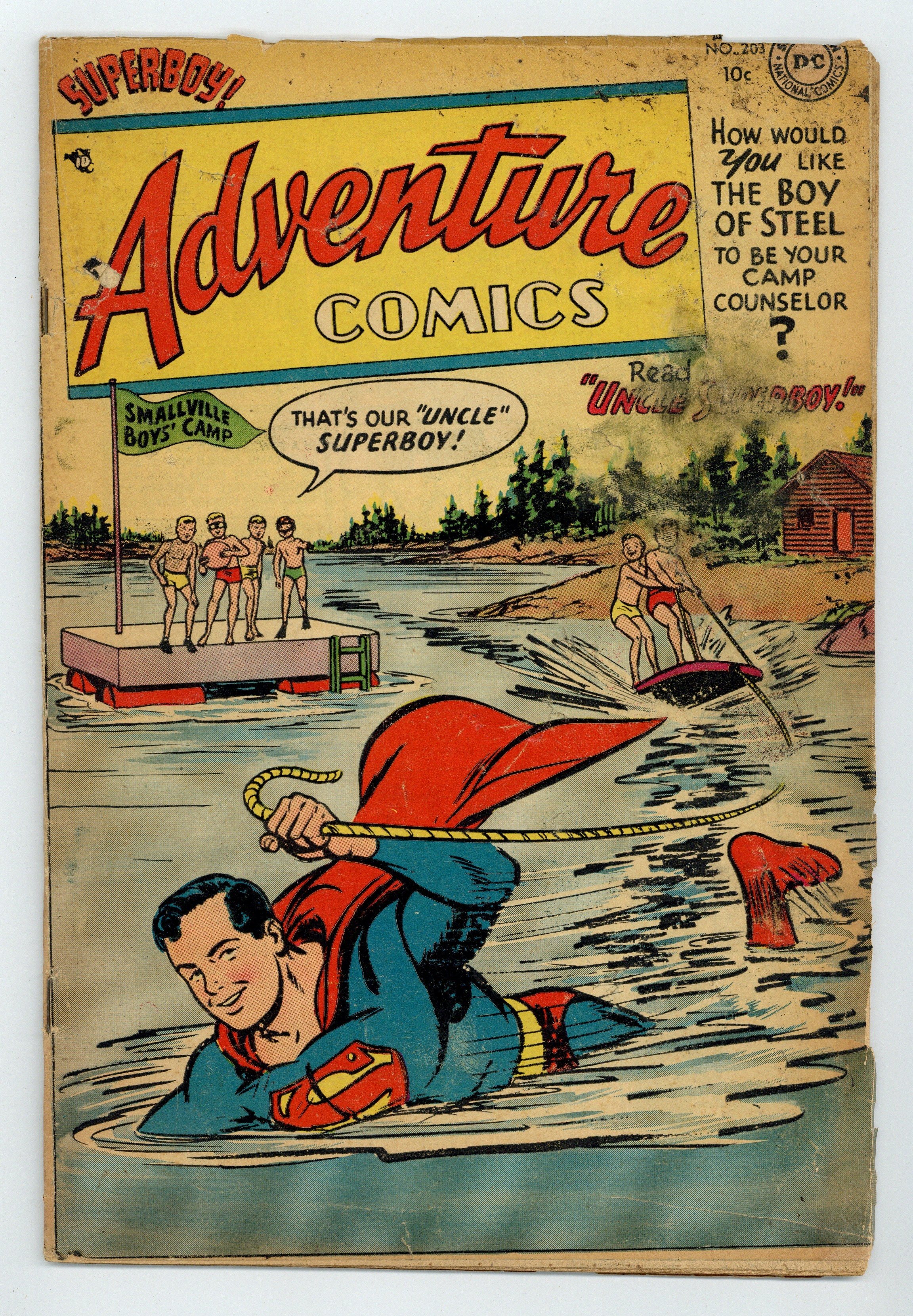 Cover art by Win Mortimer. Uncle Superboy, art by John Sikela; Superboy is a camp counselor. Tips on Summer Fun! starring Peter Porkchops, script by Jack Schiff, art by Rube Grossman. The Shark with the Human Brain starring Aquaman, script by Jack Miller, art by Ramona Fradon. Shorty humor page by Henry Boltinoff. The Candid Camera Crime starring Johnny Quick, script by Otto Binder, art by Ralph Mayo. Congo Bill #1 house ad, art by Nick Cardy. The Puzzle of the Five Queens starring Green Arrow, script by Bill Finger, art by George Papp. 44 pages, Full Color. Cover price $0.10.