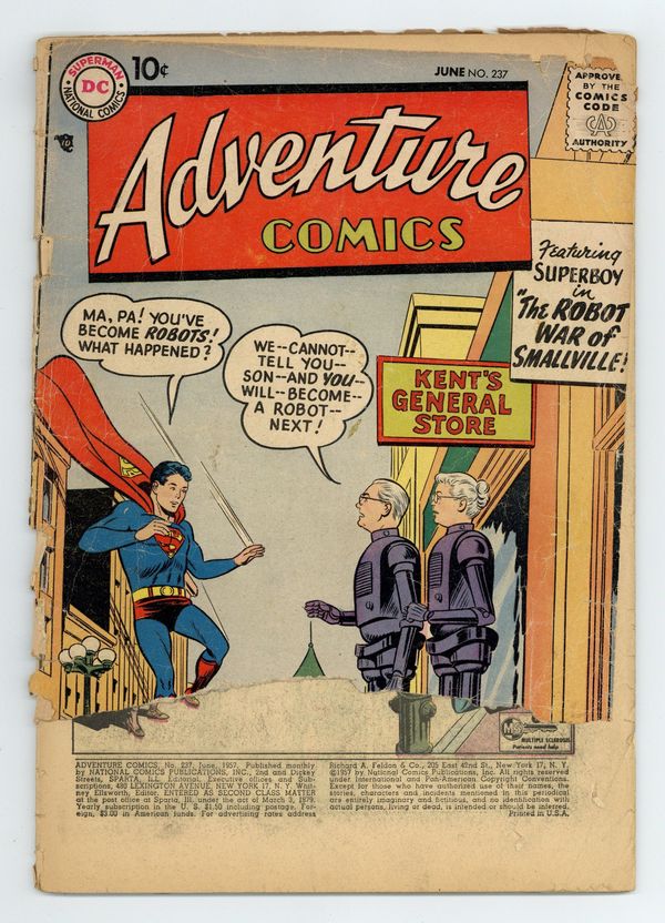 Cover pencils by Curt Swan, inks by Stan Kaye. The Robot War of Smallville, script by Jerry Coleman, art by John Sikela; Superboy returns to Smallville after a trip and finds that everyone has been turned into robots. Sgt. Bilko #1 ad. Ollie humor page by Henry Boltinoff. The Secret of the Sea King starring Aquaman, art by Ramona Fradon. The Home-Made Arrows starring Green Arrow, art by George Papp. Lem 'n' Lime humor page by Henry Boltinoff. Two-page text feature, How to Become an Expert Pitcher, by Jack Miller. 36 pages, Full Color. Cover price $0.10.