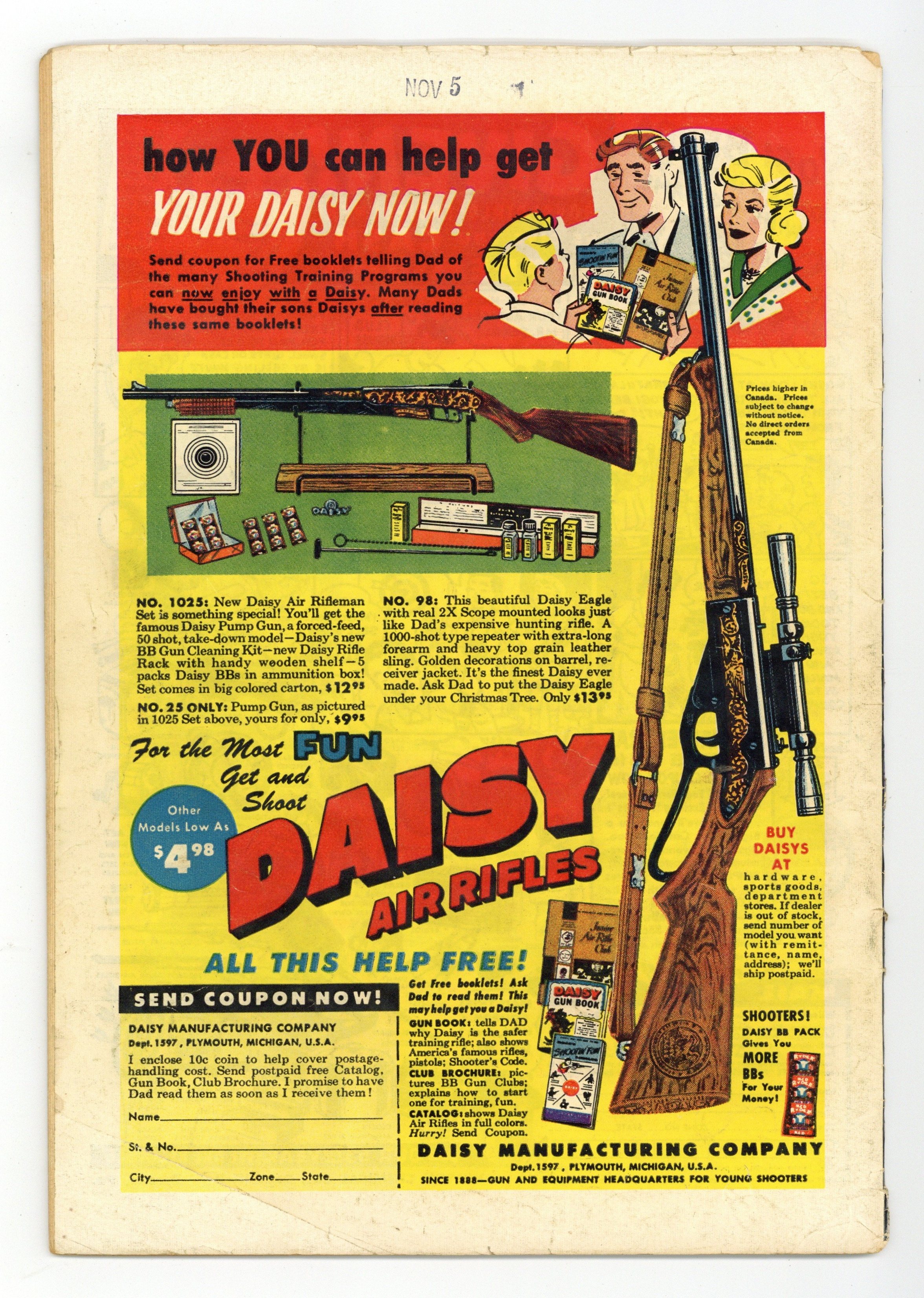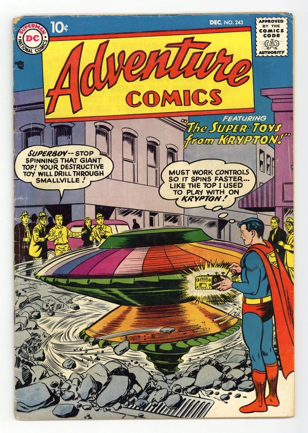 Cover pencils by Curt Swan, inks by Stan Kaye. The Super-Toys from Krypton, pencils by Curt Swan, inks by Stan Kaye; A box of toys from Krypton crashes on Earth and causes all sorts of trouble for Superboy. The One and Only Superman comics ad. Aquaman's Amazing Bets, art by Ramona Fradon. Biography of Gentleman Jim Corbett. The Million-Dollar Arrows starring Green Arrow, art by George Papp. 36 pages, Full Color. Cover price $0.10.