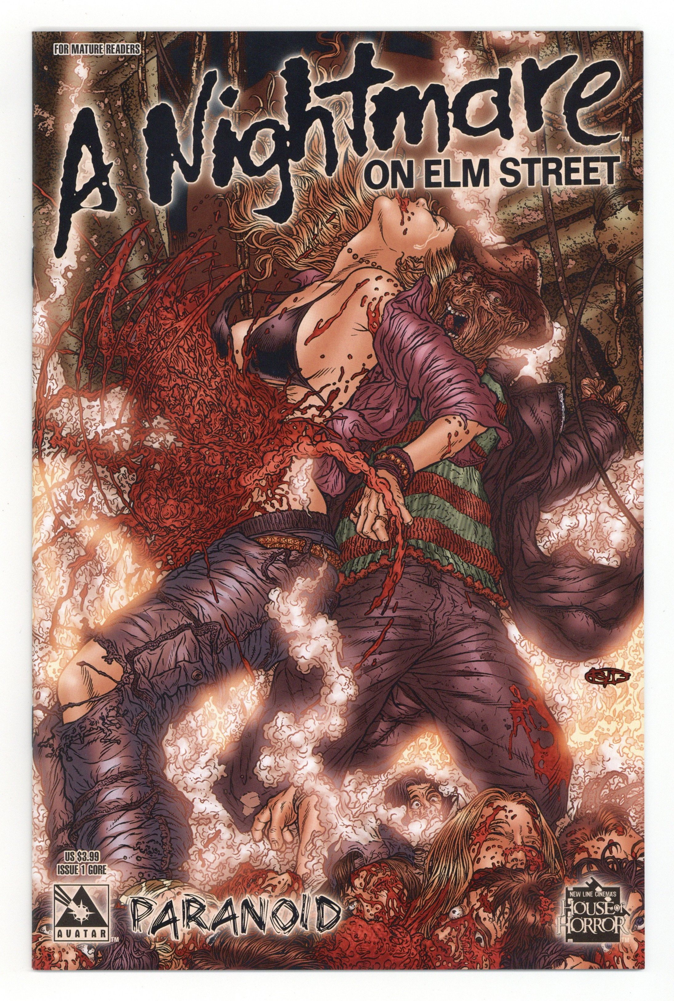 $25.00Gore cover. by Brian Pulido & Juan Jose Ryp. One, two, he's coming for you... Freddy's back in this all new three issue series from the same intense creative team as the sold-out Nightmare Special! The master of the macabre, writer Brian Pulido, and the illustrative genius, artist Juan Jose Ryp, return to bring Freddy Kruger back into the tormented dreams of children. This new series finds the kids of Springwood all drugged up with Hypnocyl, trying to keep Kruger from their heads. But Freddy has a plan, stop the shipments of Hypnocyl from reaching the town! As they start to dream again, his power grows, and so does the carnage! Let the splatter begin! As well as this regular cover by series artist Juan Jose Ryp, it's also available with a Wraparound, Gore, Terror, and a super-limited black leather cover with art by Juan Jose Ryp. Cover price $3.99.