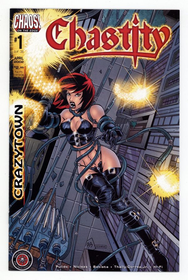 by Fabian Nicieza, Adriano Batista, Cleber Salles, & Hi-Fi Chastity, the reluctant vampire assassin, is back. If Shattered brought Chastity back to her roots, Crazytown takes Chastity to places you could never imagine! While Chastity struggles with an unstable romance with the vigilante known as Midknight, madness lurks, as Mister Mischief and Psychotica, two over-the-top villains arrive to disrupt the party! Enacting absurd crimes from grade B horror movie moments, they're out to destroy Midknight and Chastity. Can Chastity and her mysterious partner evade the demented insanity of these two foes and still salvage a relationship? It's Crazytown kiddies, so get ready for a wild circus! FC, 32pg (1 of 3) $2.99 Cover price $2.99.