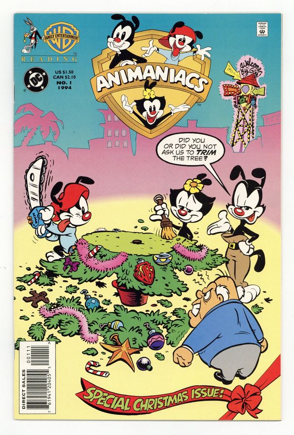 TV hasn't been the same since the Warner brothers (and their Warner sister, Dot) burst into homes and became an overnight sensation with comedy and energy that have been wowing and delighting audiences of all ages. Starring the outrageously popular characters from the award-winning series by Steven Spielberg and Warner Bros. Animation, ANIMANIACS: A CHRISTMAS SPECIAL #1 stars Yakko, Wakko, Dot and all the rest of the Animaniacs cast! In addition, you'll learn the true story of how the wacky Warners were first locked away in the Warner Bros. studio lot water tower...only to escape again and again to wreak madcap havoc! With Pinky & the Brain, the Goodfeathers, Dr. Scratchansniff, Slappy Squirrel, Rita & Buttons and all the rest, this year-end holiday special is a perfect book for young readers and Animaniacs fans of all ages. Hellooooo NURSE! Cover price $1.50.